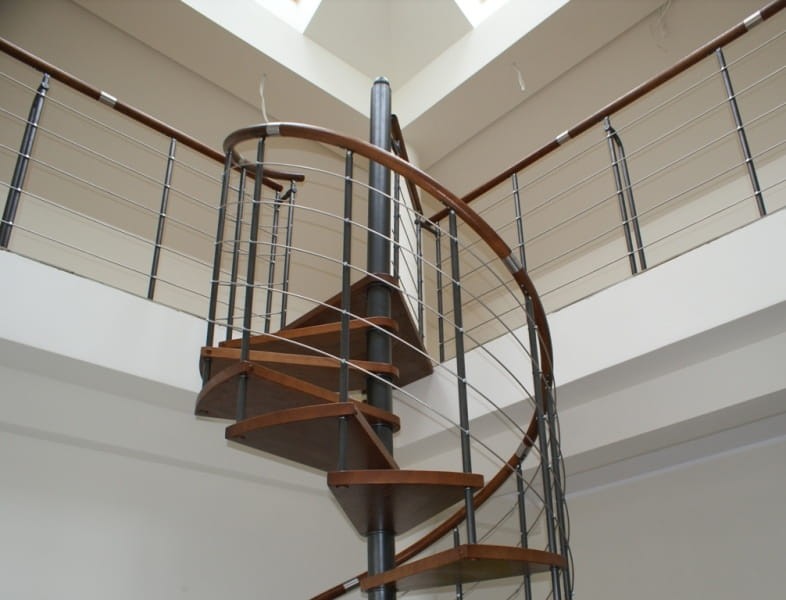 Die angebotenen Wendeltreppen passen in zwei Arten von Öffnungen in der Decke und haben abhängig davon unterschiedliche Podeste. Dreieckige Podeste passen in runde Öffnungen. Dreieckige und trapezförmige Plattformen sind auf quadratische Öffnungen abgestimmt. Die Treppe in diesem Modell hat eine rechte und linke Behandlung. Je nach Konzept sind sie universell montierbar.