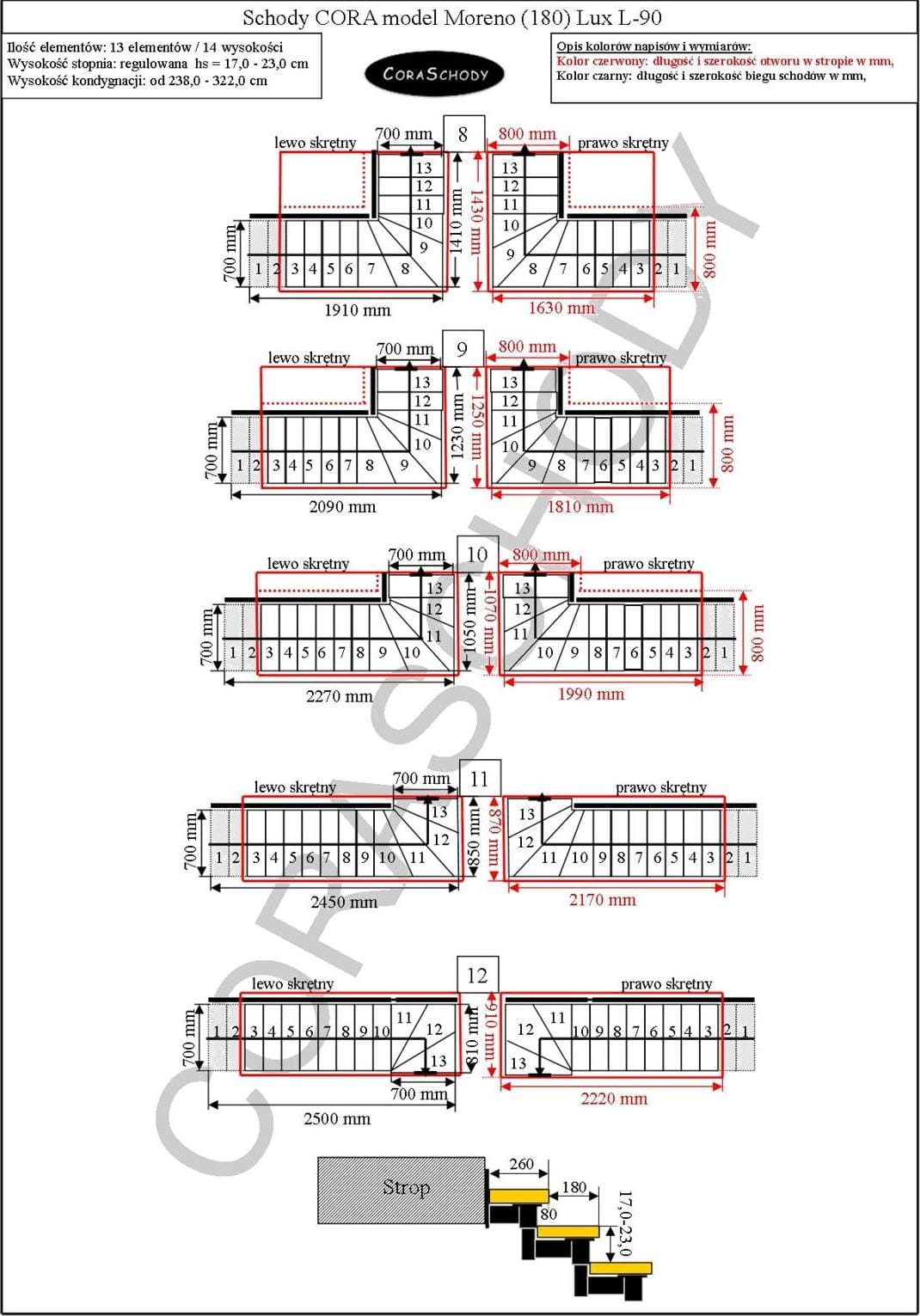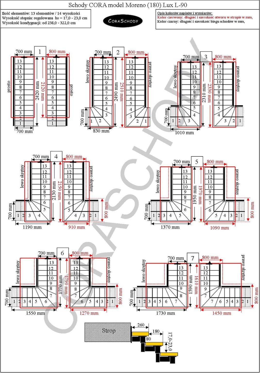 Moreno 180 Lux Treppen können in eines der 24 vom Hersteller vorgestellten Systeme eingebaut werden. Die Treppenbehandlung erfolgt in der originalen L-90 Torsionsform, links oder rechts, sowie einem ungewöhnlich geraden Verlauf – in diesem Fall sollte eine entsprechende Anmerkung zur Form hinzugefügt werden.