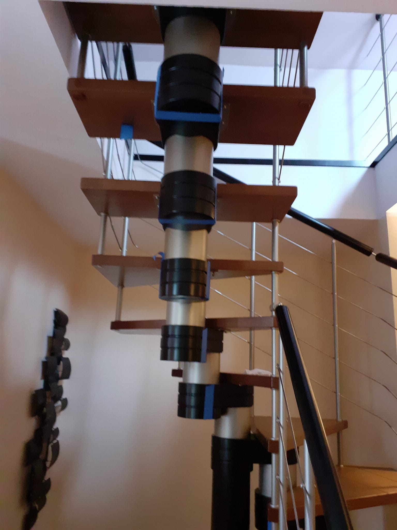 Es wird empfohlen, die Treppe bis zu 5 cm von der Wand entfernt zu installieren, was die Installation von Ankern ermöglicht. Wenn die Wand der Verankerung nicht standhalten kann, muss stattdessen eine Stützsäule installiert werden. Bei freistehenden Treppen ist der Einsatz einer Stützsäule sowie einer beidseitig schützenden Balustrade vorgesehen, weitere Optionen auf Anfrage.