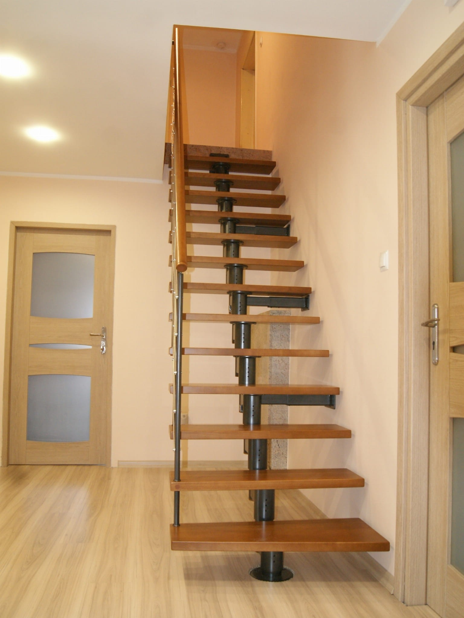 The stairs should partially run against the wall. They cannot be moved away from the wall by more than 5 cm. This is related to the safety of using the stairs. It is necessary to use a wall anchor.