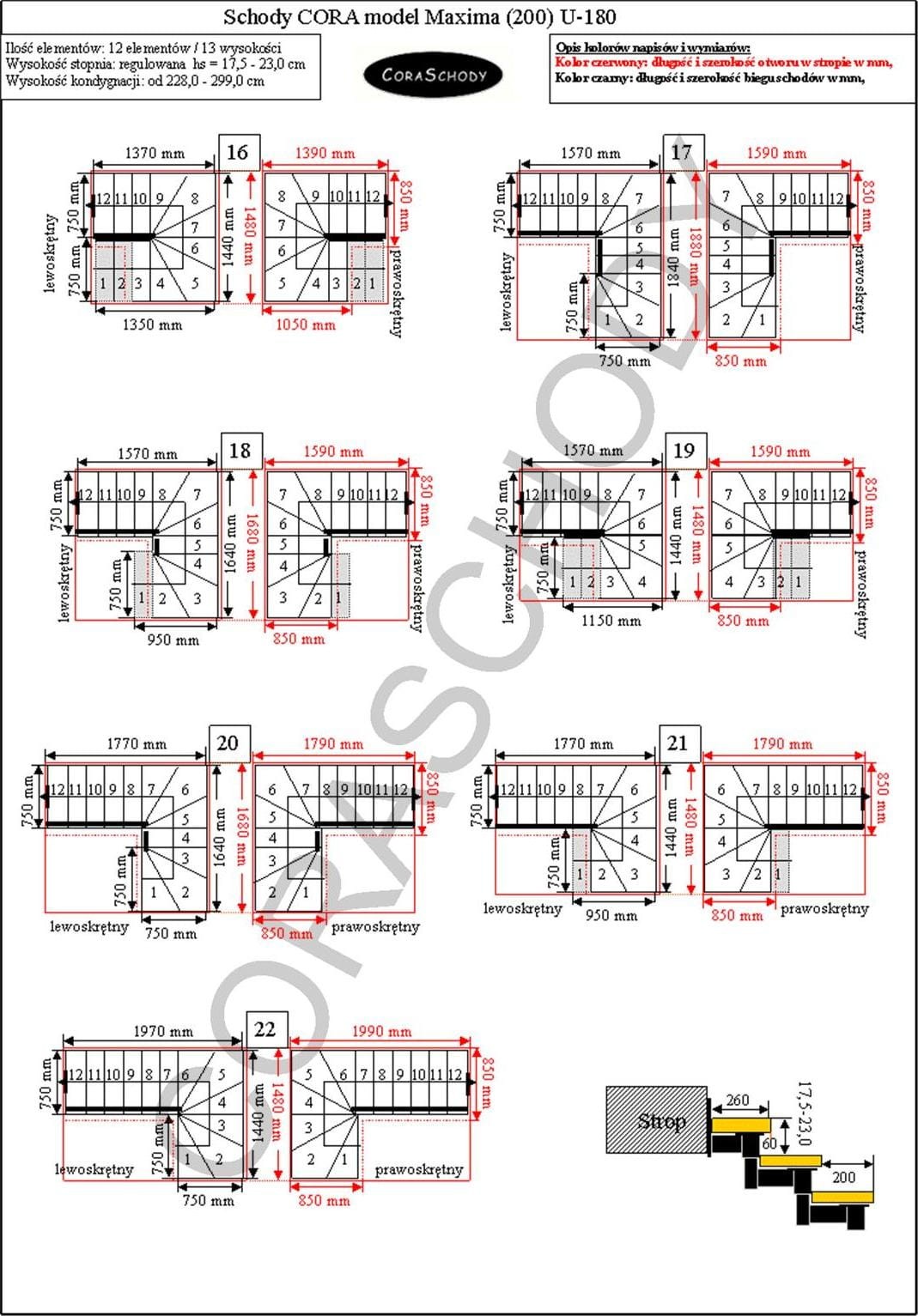 Floor to floor 228 - 299 cm - 12 steps / 13 heights (standard)
