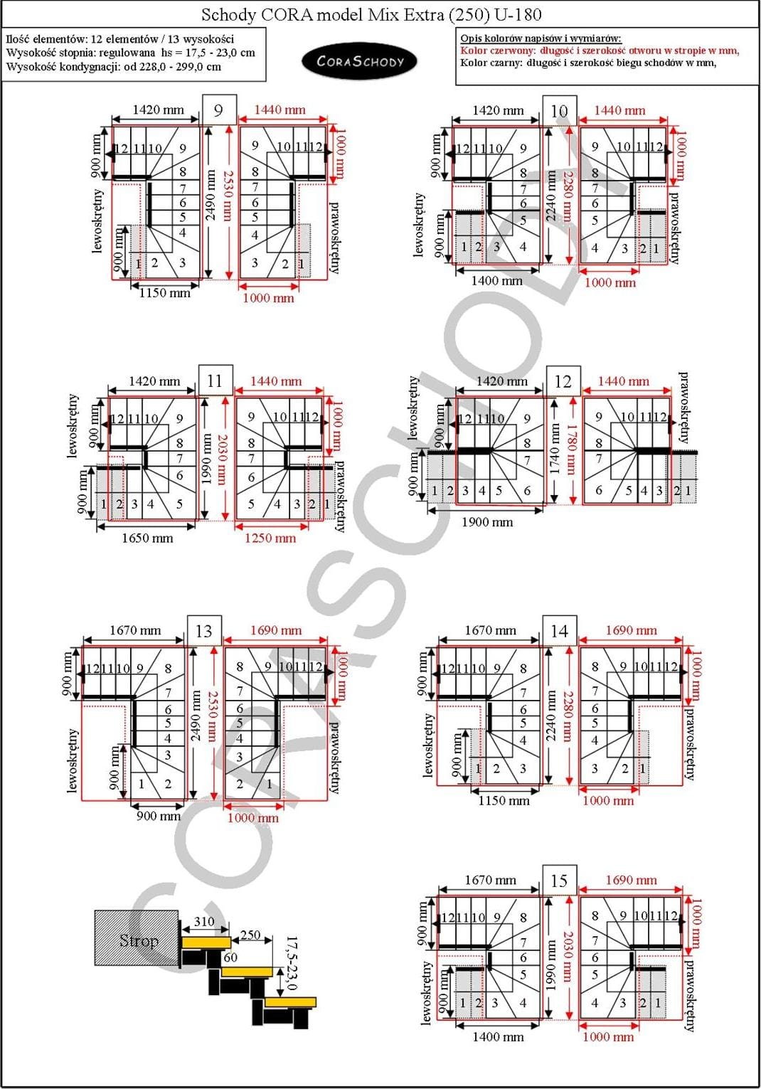 Floor to floor 228 - 299 cm - 12 steps / 13 heights (standard)