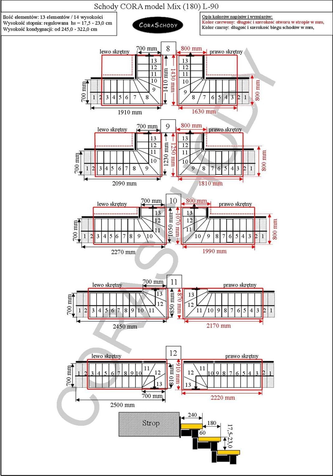 Floor to floor 245 - 322 cm - 13 steps / 14 heights (Standard)