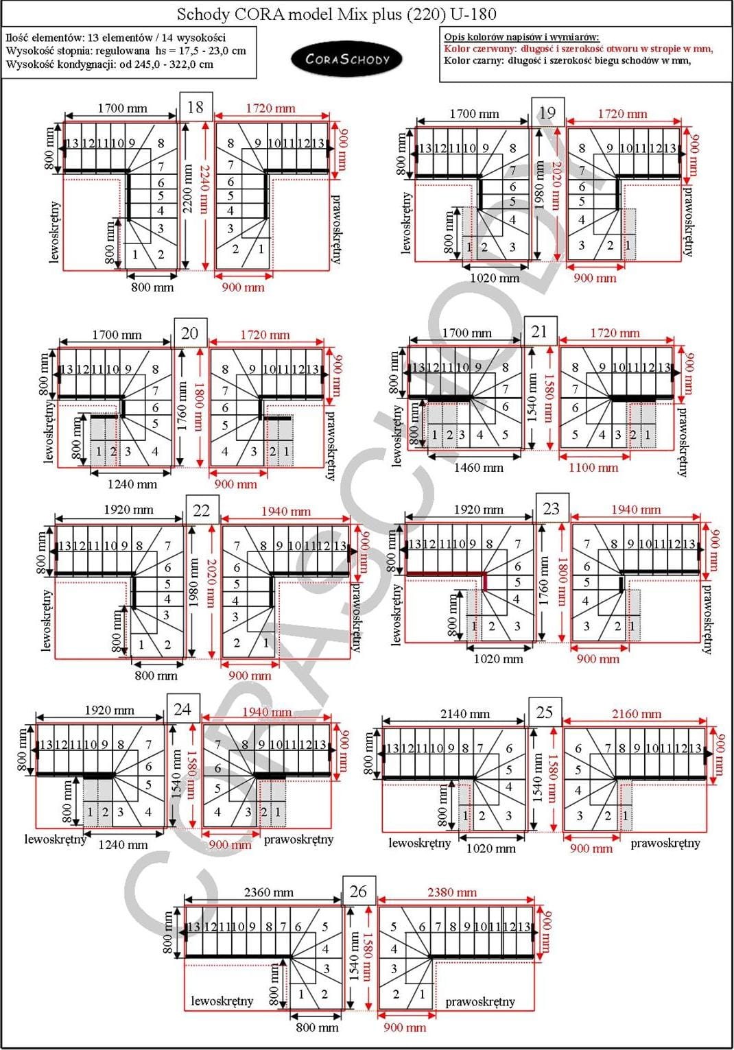 CORA metal stairs, model Mix Plus Metal 220 U-180, 13 elements
