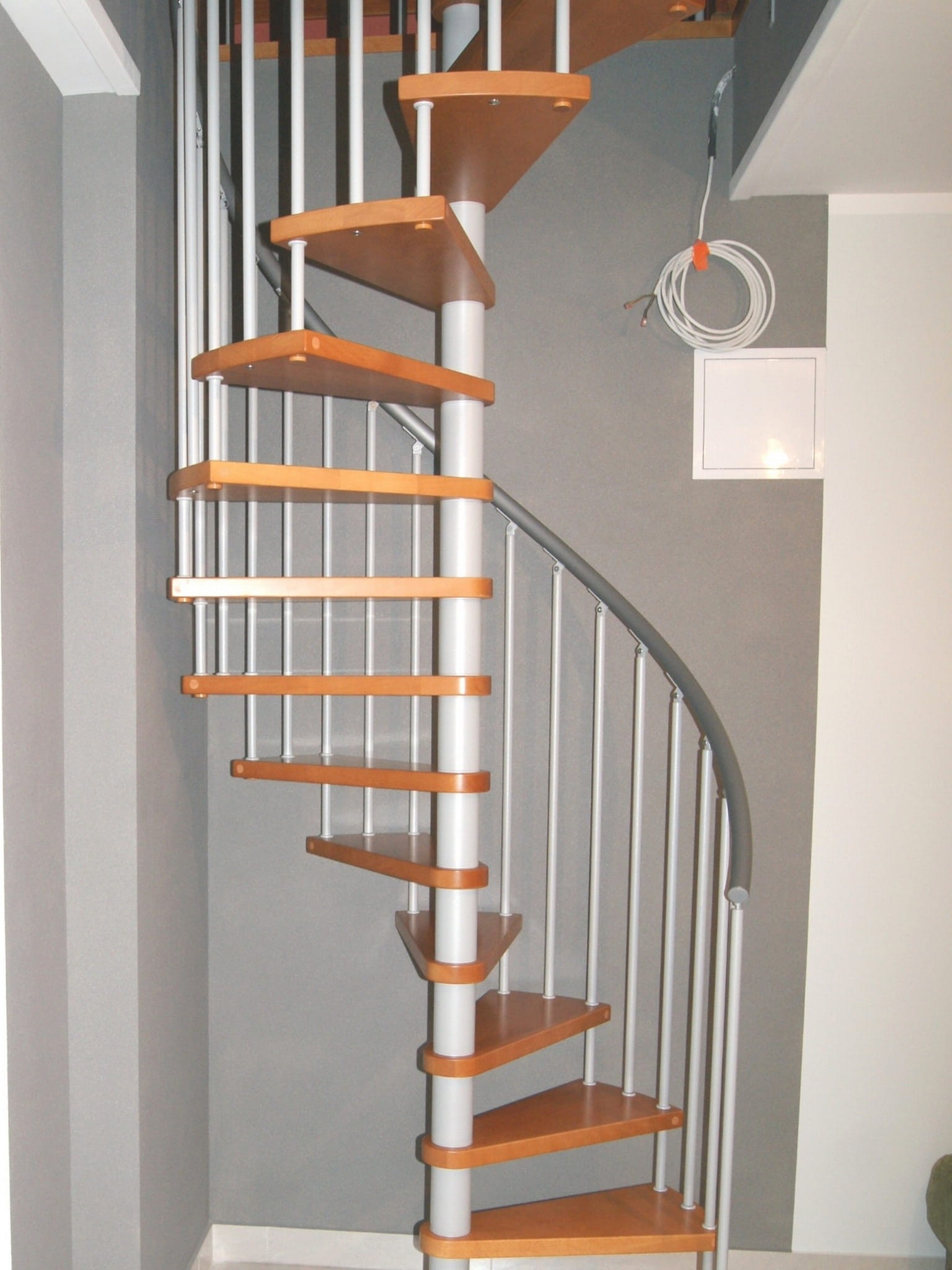 The offered spiral stairs fit into two types of openings in the ceiling and, depending on them, have different landings. Triangular landings fit in round openings. Triangular and trapezoidal platforms are matched to square openings. The stairs in this model have a right and left treatment. They can be mounted universally, depending on the concept.