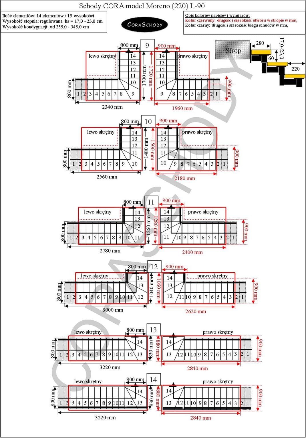 Moreno 220 06 stairs can be installed in one of the 28 systems presented by the manufacturer. The stair treatment is in the original L-90 torsion form, left or right, as well as an unusual straight procedure - in this case, an appropriate annotation should be added to the form.