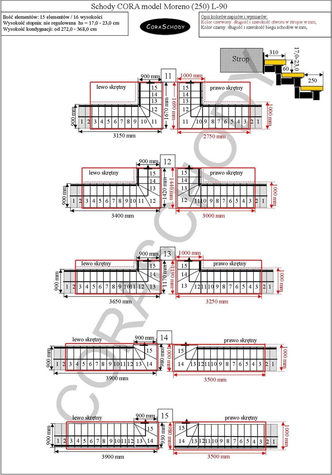 Wooden stairs CORA model Moreno 250 06 L-90 15 elements