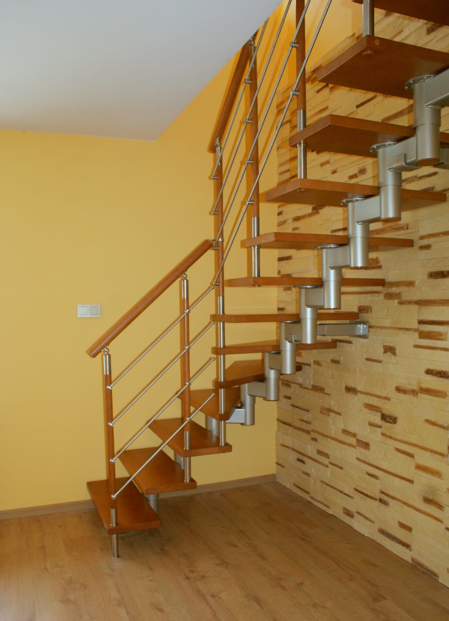 The stairs should run partly against the wall. They must not be moved away from the wall by more than 5 cm. This is related to the safety of using the stairs. It is necessary to apply the anchor to the wall.