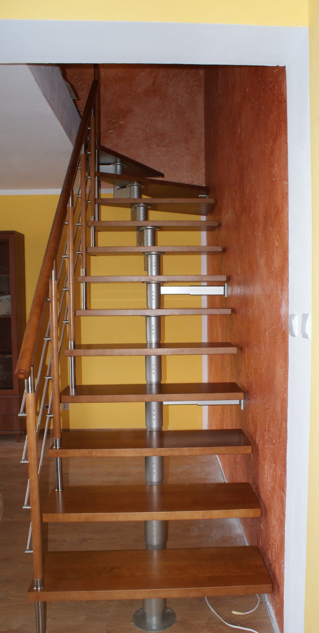 The stairs should run partly against the wall. They must not be moved away from the wall by more than 5 cm. This is related to the safety of using the stairs. It is necessary to apply the anchor to the wall.