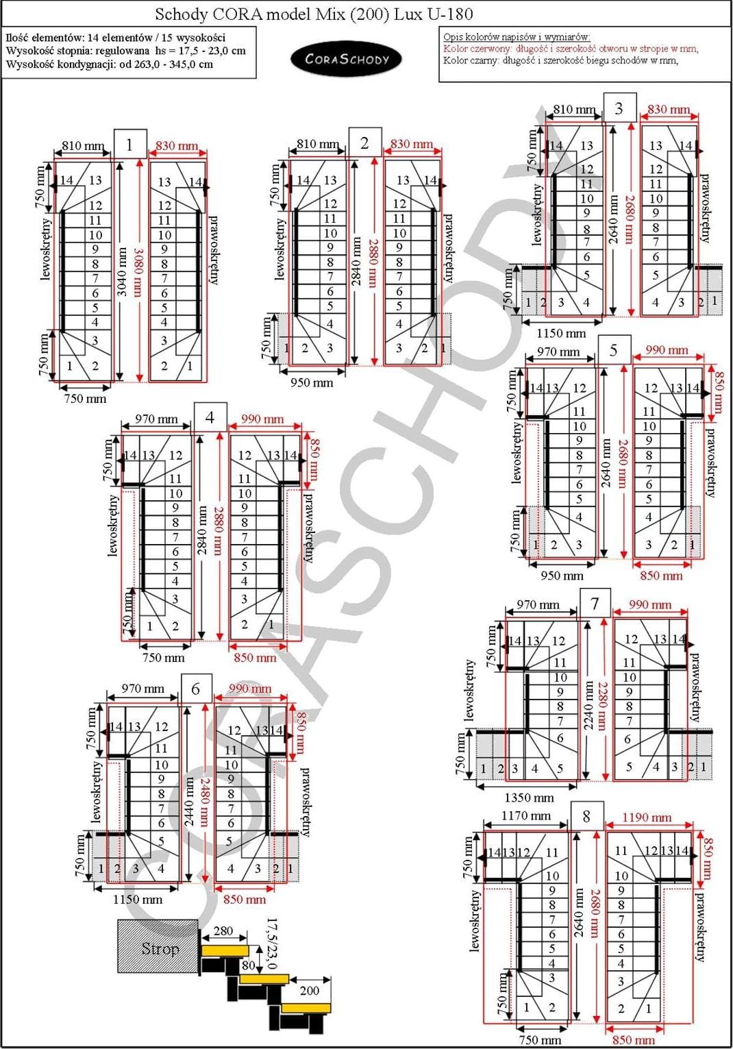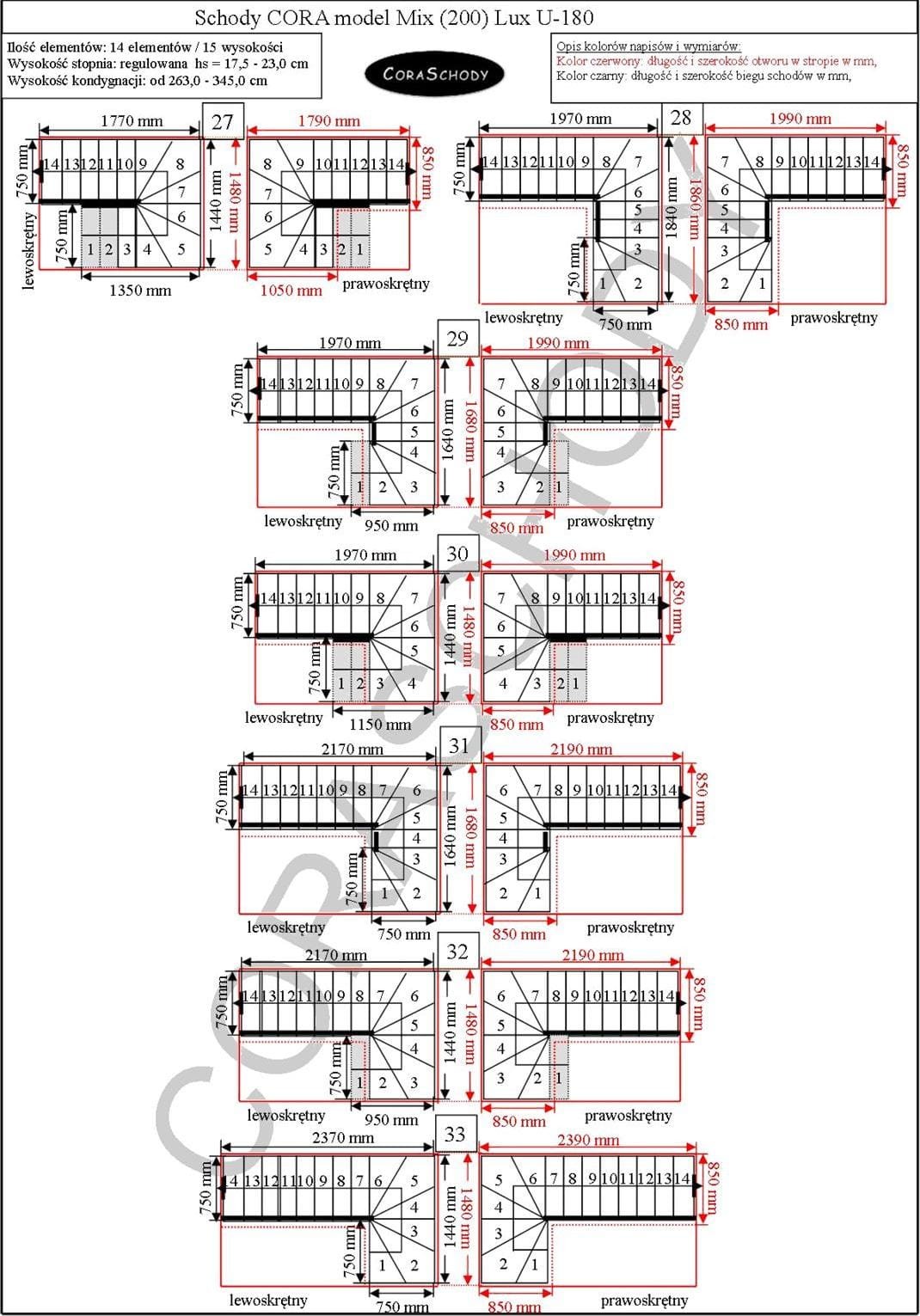 The Mix 200 lux stairs can be installed in one of 66 configurations, which are fully presented by the manufacturer. This model has original U-180 treatment, both right and left. It is possible to order a simple procedure after adding annotations to the order form.