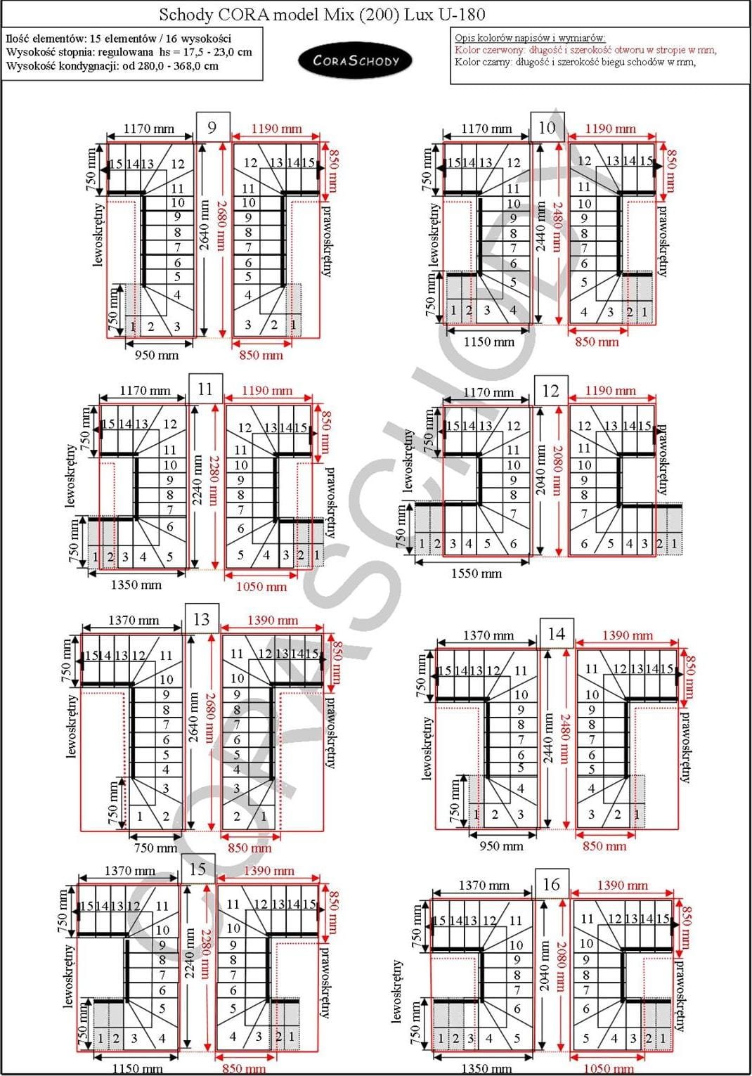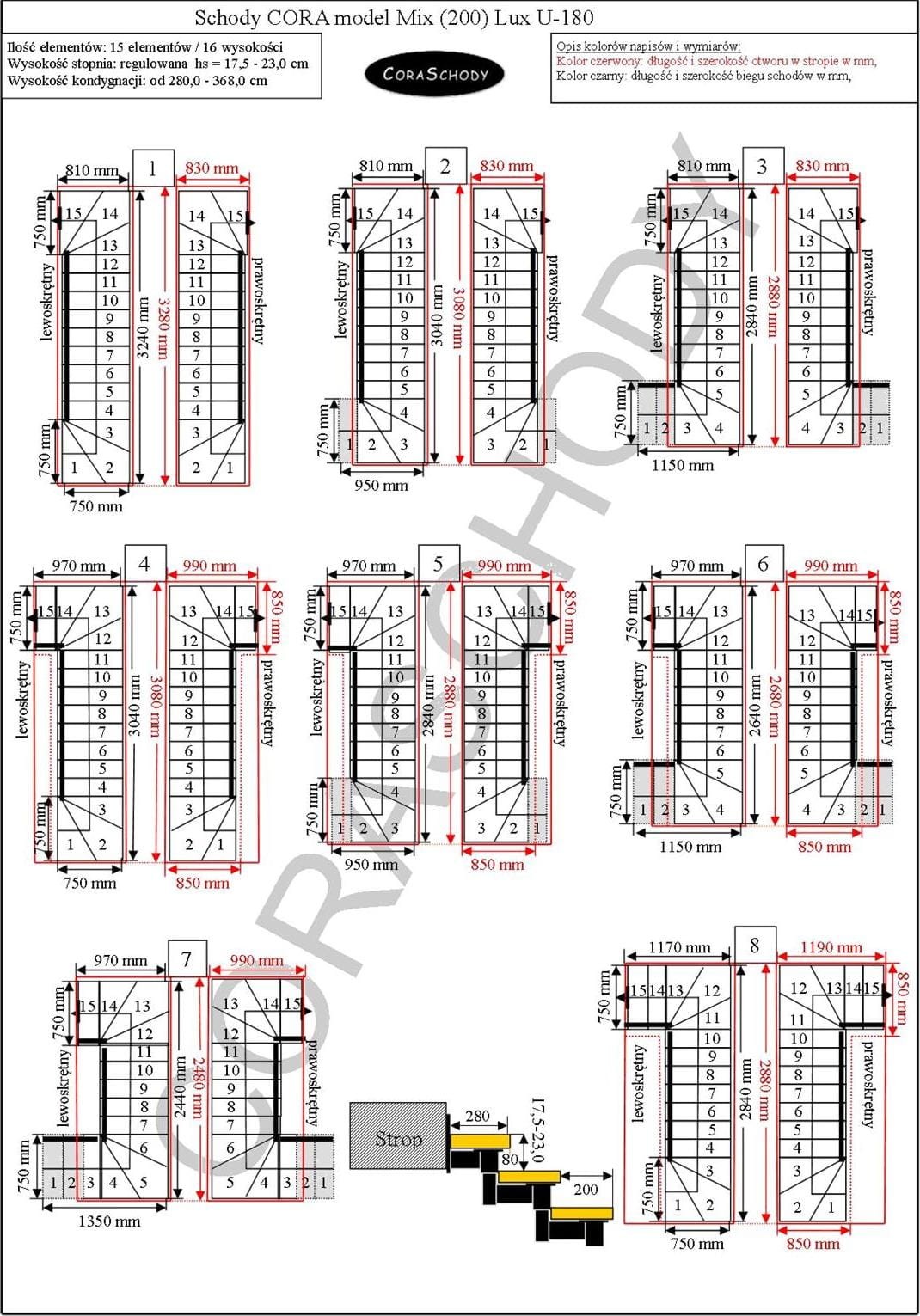 The Mix 200 lux stairs can be installed in one of 78 configurations, which are fully presented by the manufacturer. This model has original U-180 treatment, both right and left. It is possible to order a simple procedure after adding annotations to the order form.