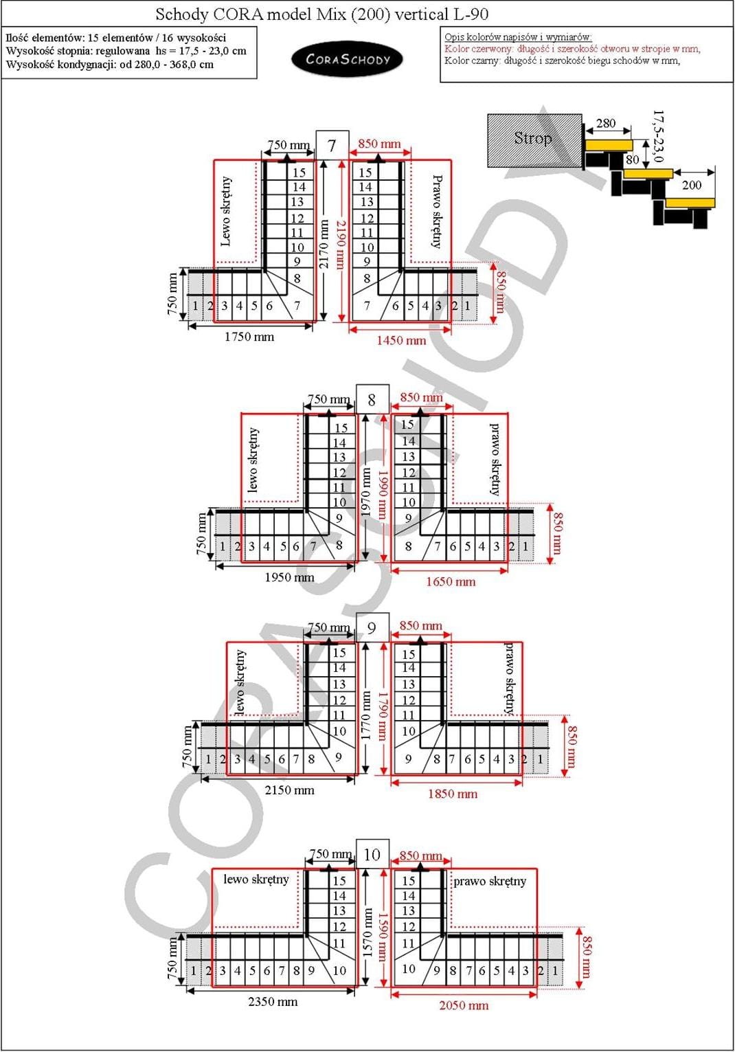 Floor to floor 210 - 276 cm - 11 steps / 12 heights (- 4 steps)