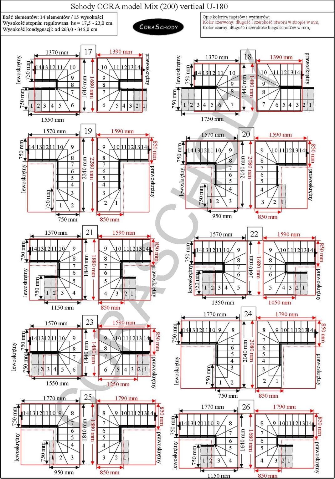 The Mix 200 vertical stairs can be installed in one of 66 configurations, which are all presented by the manufacturer. This model has original U-180 treatment, both right and left. It is possible to order a simple procedure after adding annotations to the order form.