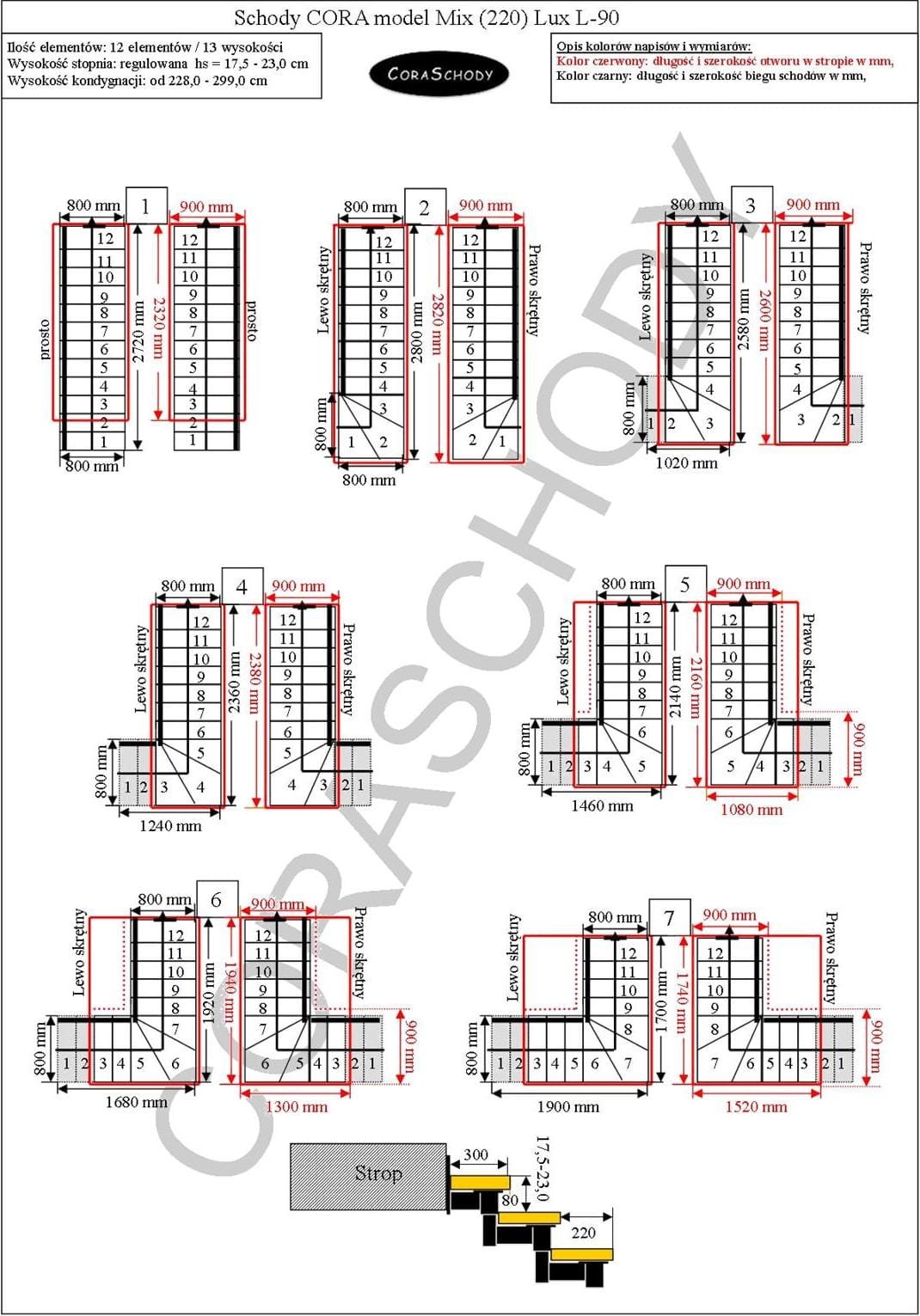 Floor to floor 228 - 299 cm - 12 steps / 13 heights (standard)