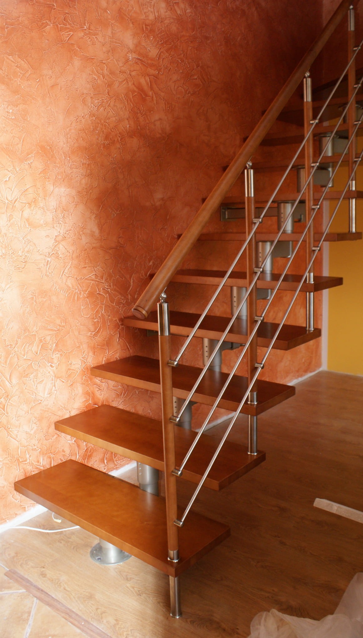 The stairs should run partly against the wall. They must not be moved away from the wall by more than 5 cm. This is related to the safety of using the stairs. It is necessary to apply the anchor to the wall.