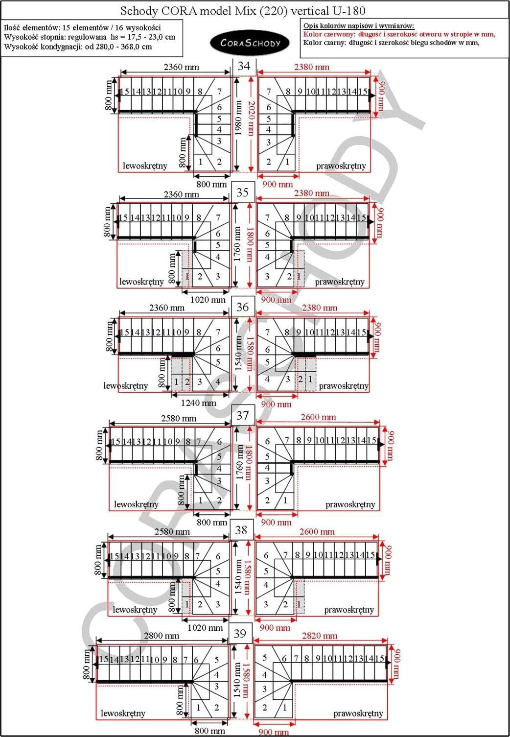 The Mix 220 lux stairs can be installed in one of 78 configurations, which are fully presented by the manufacturer. This model has original U-180 treatment, both right and left. It is possible to order a simple procedure after adding annotations to the order form.