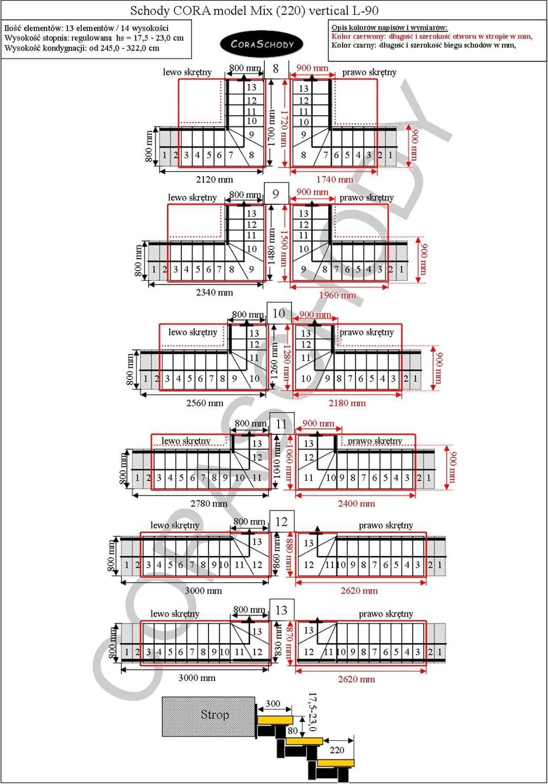 Floor to floor 210 - 276 cm - 11 steps / 12 heights (- 2 steps)