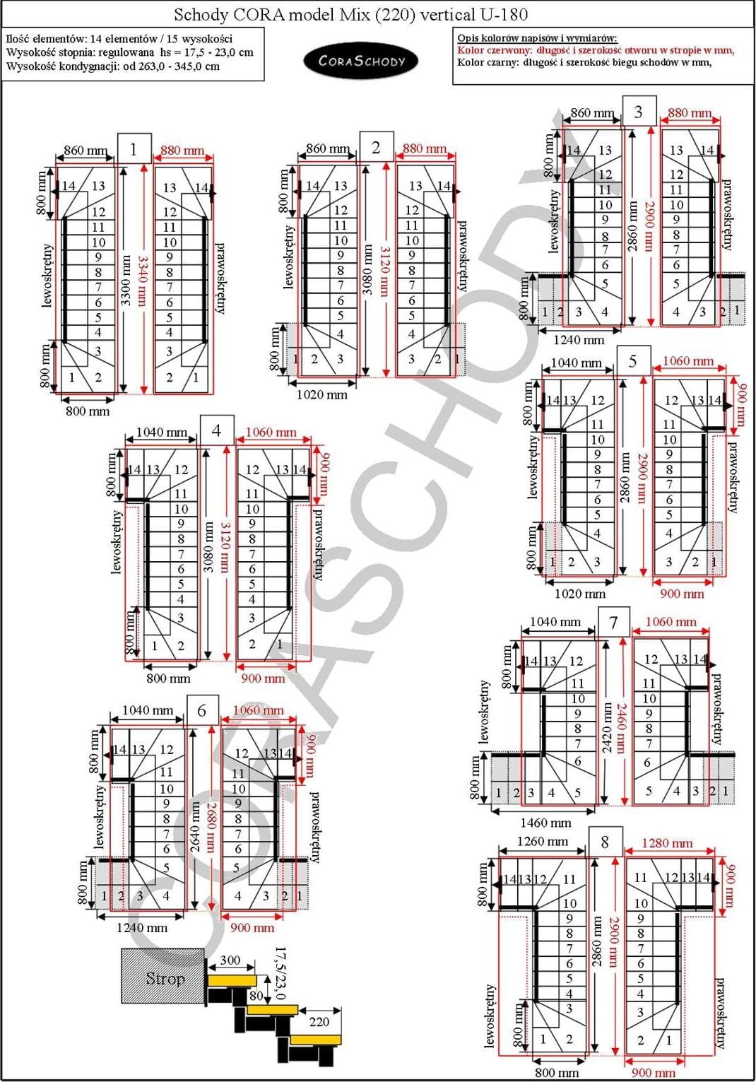 The Mix 220 vertical stairs can be installed in one of 66 configurations, which are all presented by the manufacturer. This model has original U-180 treatment, both right and left. It is possible to order a simple procedure after adding annotations to the order form.