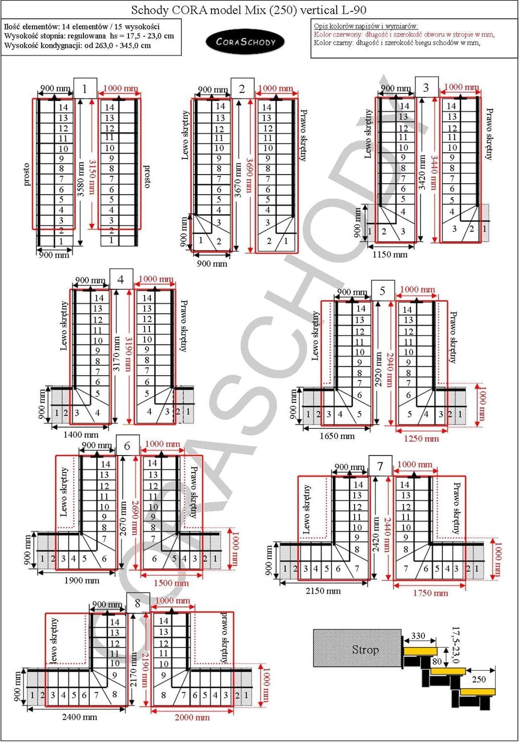 Mix 250 vertical stairs can be installed in one of the 28 systems presented by the manufacturer. The stair treatment is in the original L-90 torsion form, left or right, as well as an unusual straight procedure - in this case, an appropriate annotation should be added to the form.