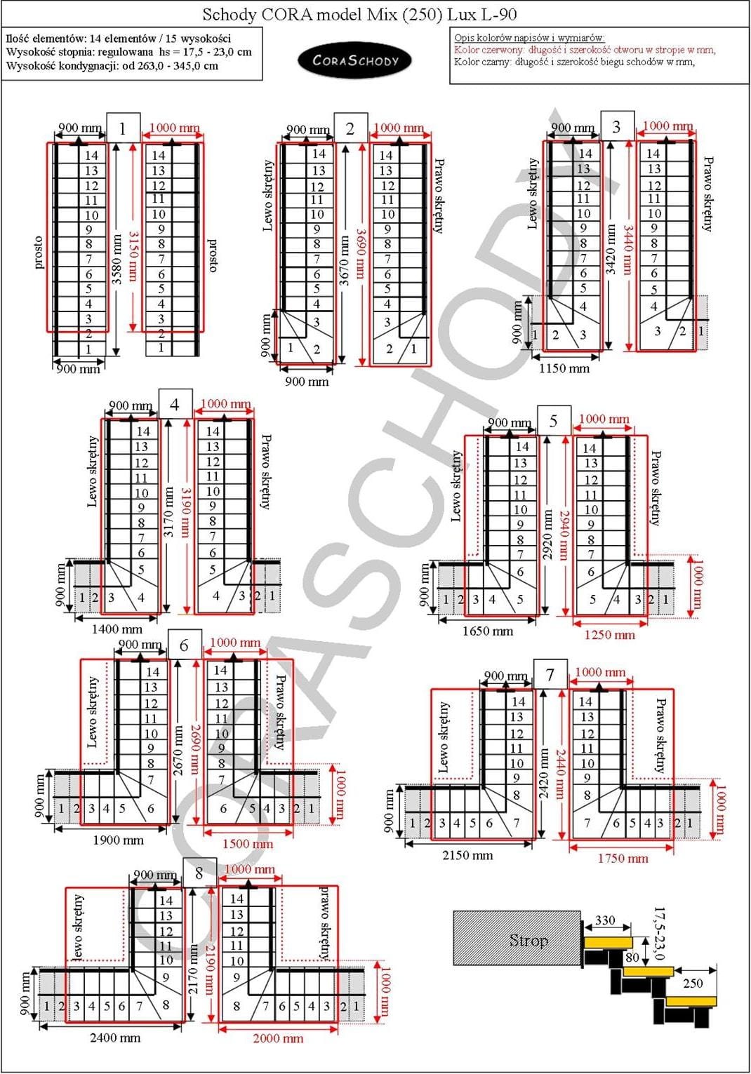Mix 250 stairs can be installed in one of the 28 systems presented by the manufacturer. The stair treatment is in the original L-90 torsion form, left or right, as well as an unusual straight procedure - in this case, an appropriate annotation should be added to the form.