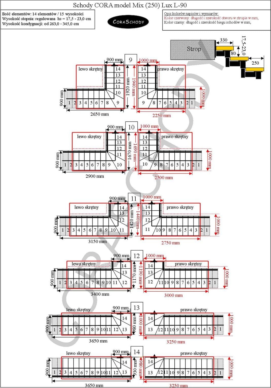 Metal stairs CORA model Mix 250 lux L-90 14 elements