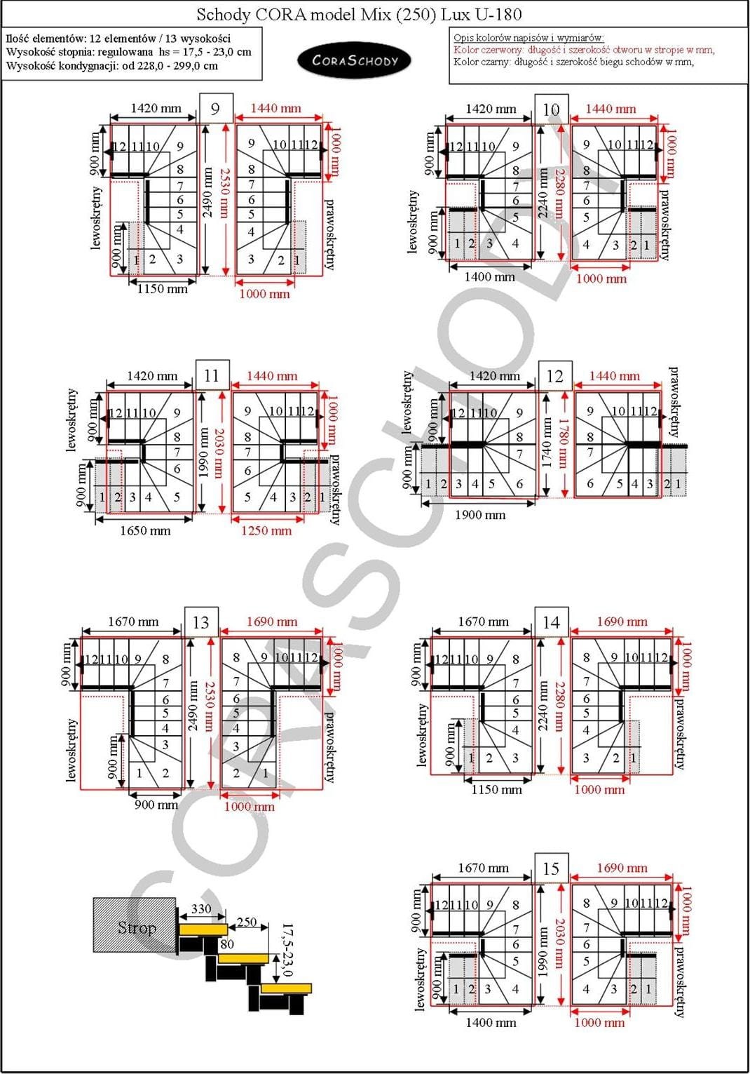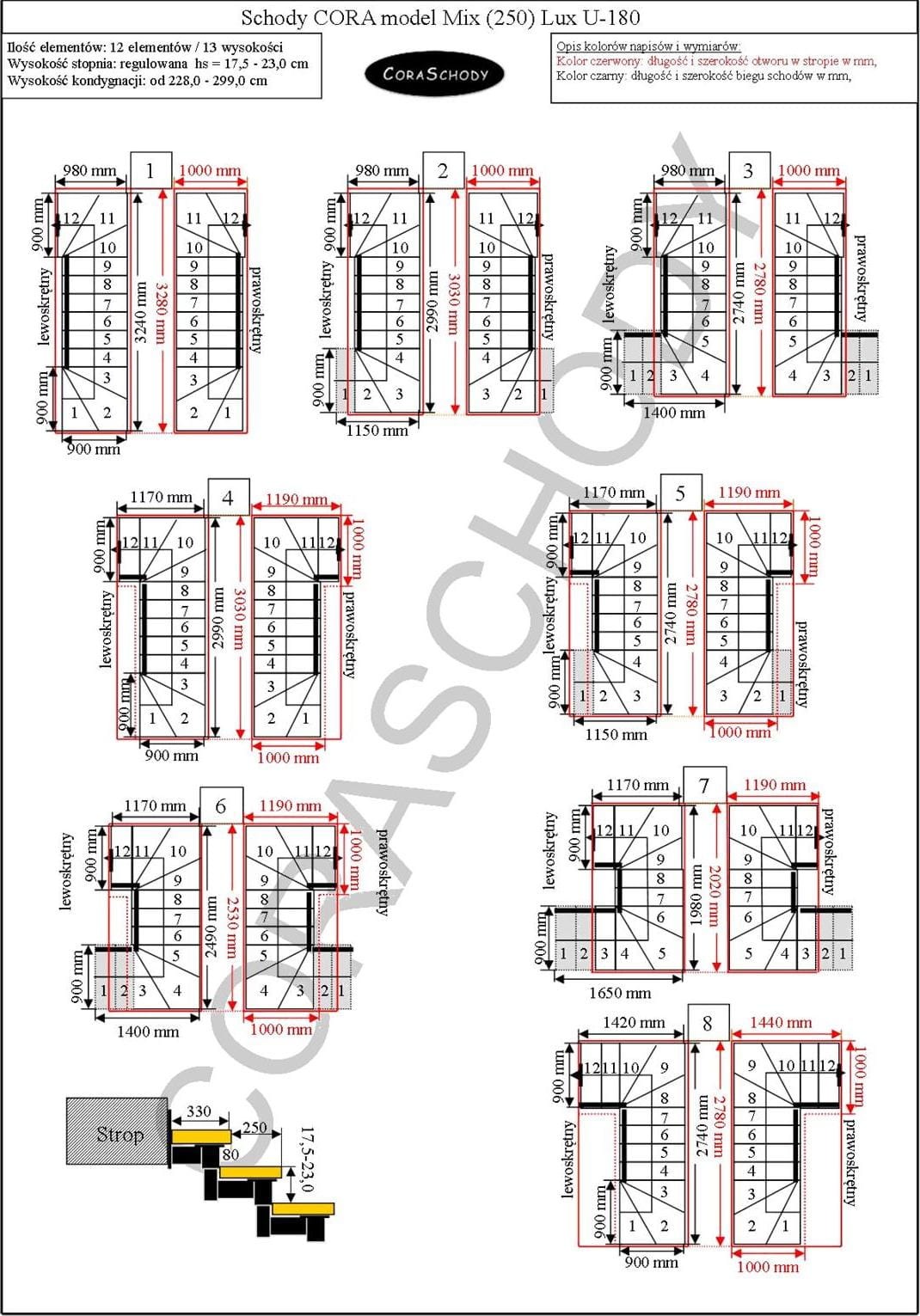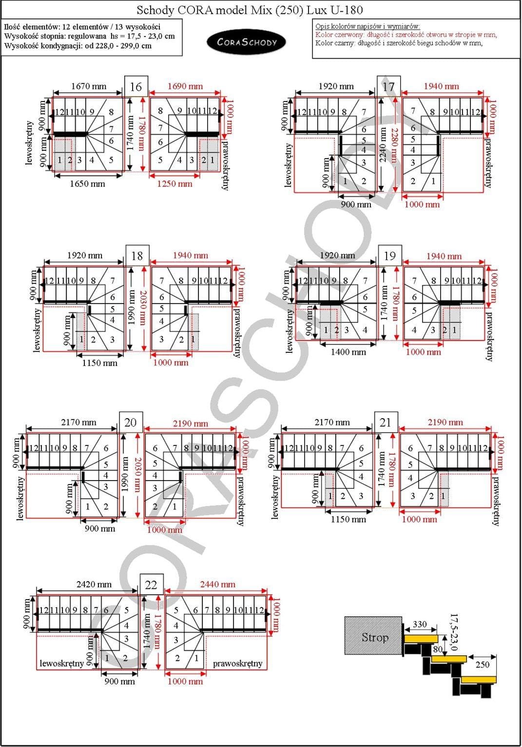 The Mix 250 lux stairs can be installed in one of 44 configurations, which are fully presented by the manufacturer. This model has original U-180 treatment, both right and left. It is possible to order a simple procedure after adding annotations to the order form.