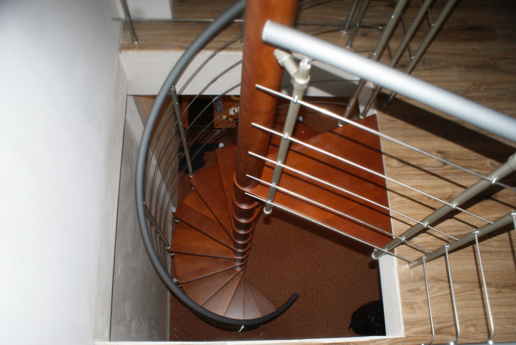 The offered spiral stairs fit into two types of openings in the ceiling and, depending on them, have different landings. Triangular landings fit in round openings. Triangular and trapezoidal platforms are matched to square openings. The stairs in this model have a right and left treatment. They can be mounted universally, depending on the concept.