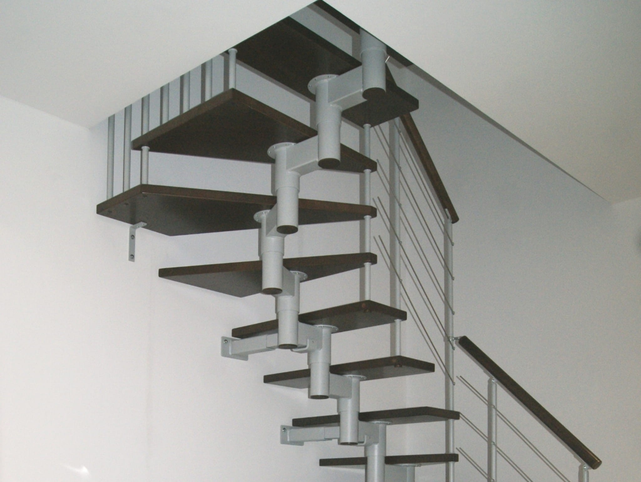 The stairs should partially run against the wall. They must not be more than 5 cm away from the wall. It is related to the safety of using the stairs. An anchor to the wall is essential.