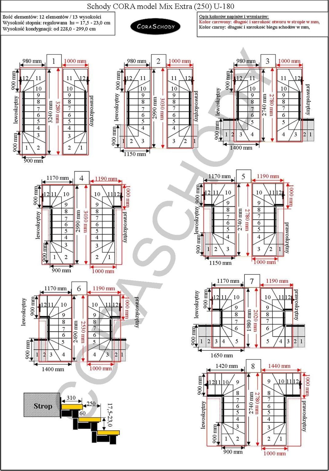 Mix Extra 08 stairs can be mounted in one of 44 configurations, fully presented by the manufacturer. This model has an original U-180 treatment, both right and left. It is possible to order a simple treatment after adding an annotation to the order form.
