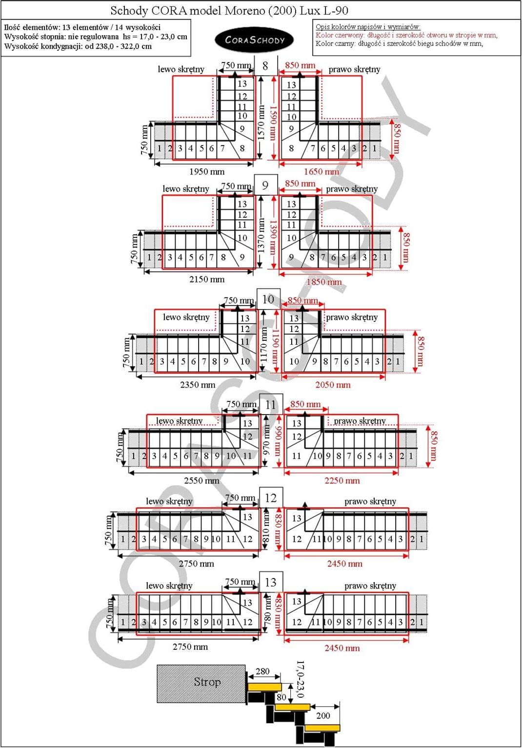 Moreno 200 lux stairs can be installed in one of the 26 systems presented by the manufacturer. The stair treatment is in the original L-90 torsion form, left or right, as well as an unusual straight procedure - in this case, an appropriate annotation should be added to the form.