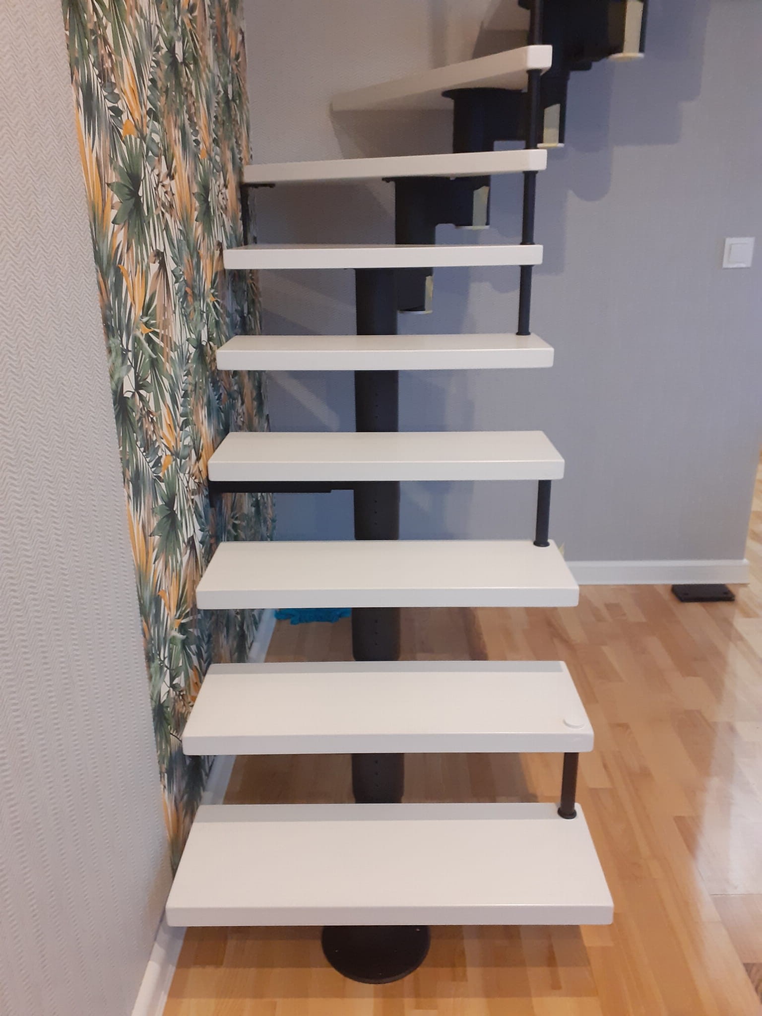 Sada obsahuje 13 prvkov schodov, poskladaných do 14 úrovní. Prvky sú vyrobené predovšetkým z masívneho dreva (farba na výber z farebnej palety prezentovanej výrobcom) a práškovo lakovanej ocele v čiernej matnej štruktúre. Po objednaní služby za príplatok odbornú montáž v danej krajine vykonáva výrobca.