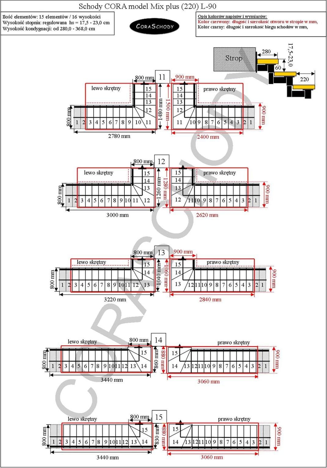 CORA schody model Mix plus 08 L-90 15 prvkov