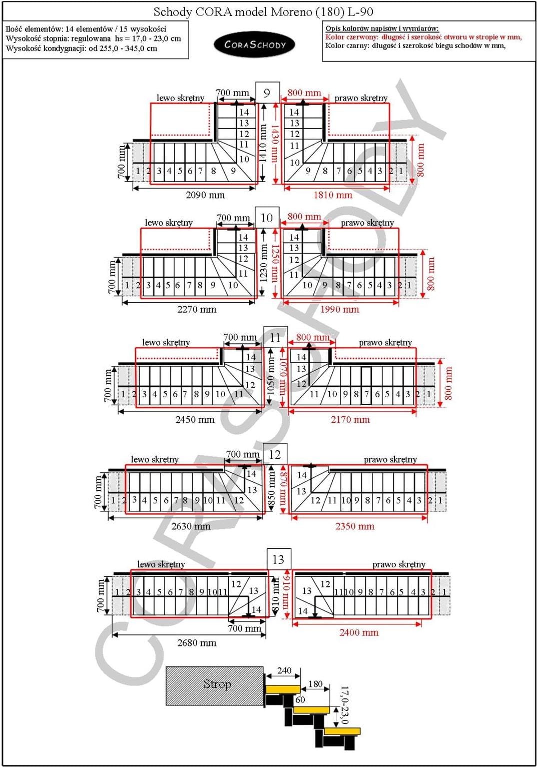 Od podlahy k podlahe 228 - 299 cm - 12 schodov / 13 výšok (- 2. schod)