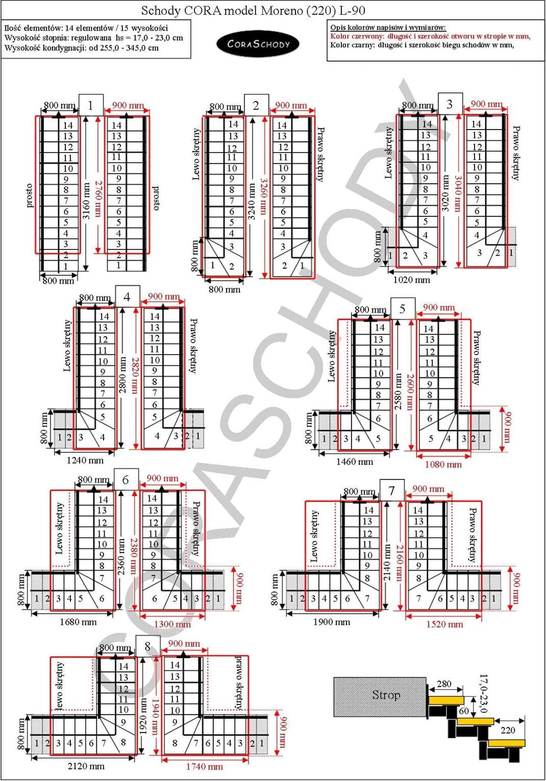 Schody Moreno 220 06 je možné inštalovať do jedného z 28 systémov prezentovaných výrobcom. Opracovanie schodiska je v originálnej torznej forme L-90, vľavo alebo vpravo, ako aj nezvyčajný rovný postup - v tomto prípade je potrebné do formulára pridať príslušnú anotáciu.