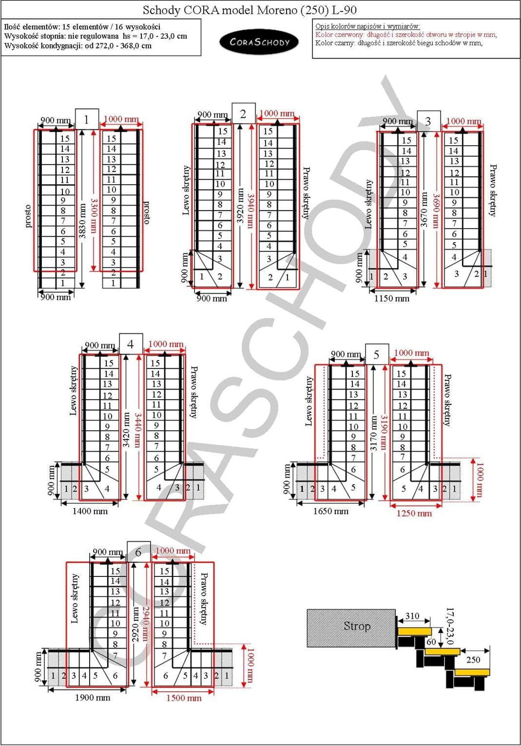Schody Moreno 250 06 je možné inštalovať do jedného z 30 systémov prezentovaných výrobcom. Opracovanie schodiska je v originálnej torznej forme L-90, vľavo alebo vpravo, ako aj nezvyčajný rovný postup - v tomto prípade je potrebné do formulára pridať príslušnú anotáciu.