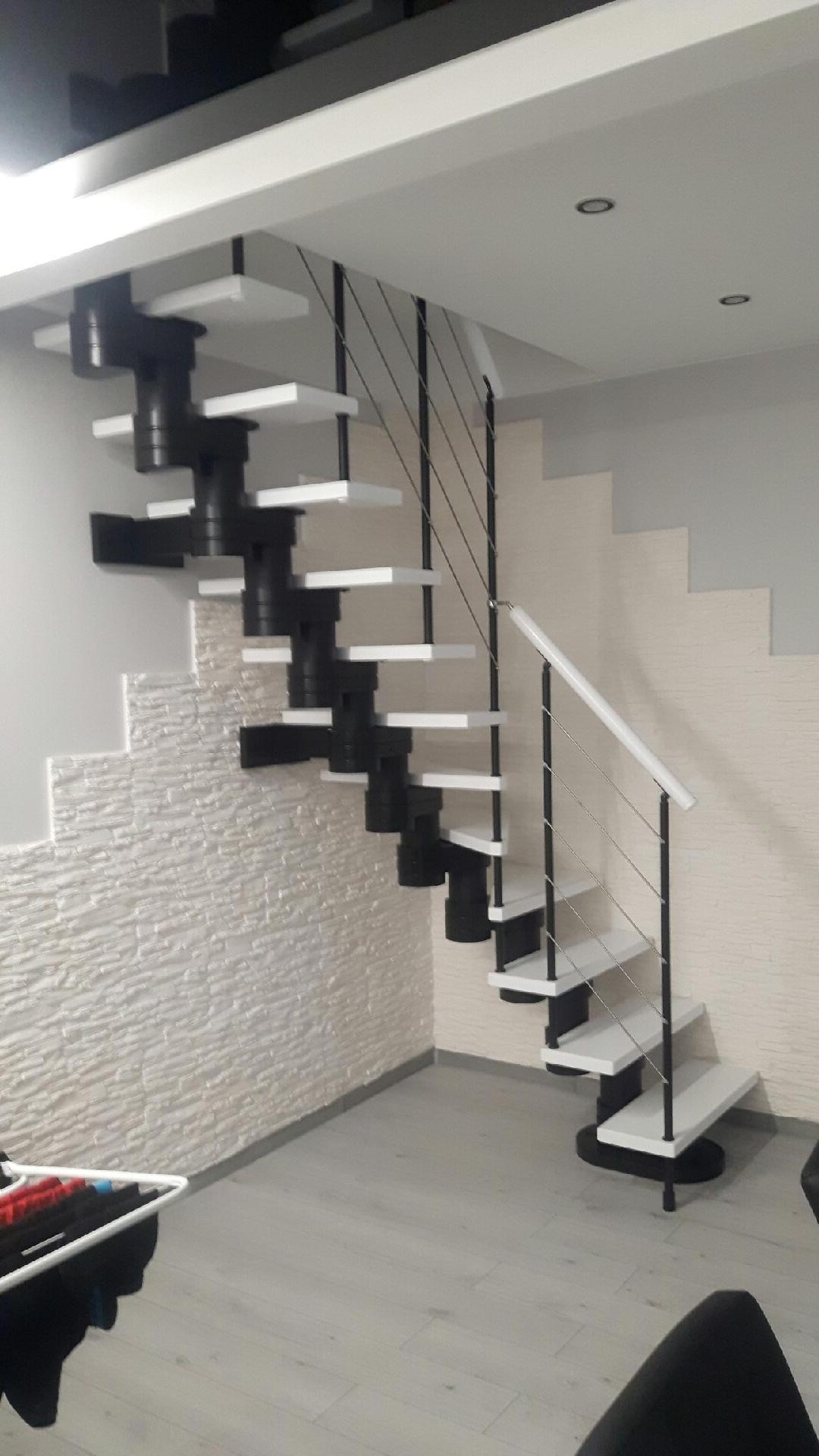 Sada obsahuje 12 prvkov schodov, poskladaných do 13 úrovní. Prvky sú vyrobené predovšetkým z masívneho dreva (farba na výber z farebnej palety od výrobcu) a práškovo lakovanej ocele v čiernej matnej štruktúre. Po objednaní služby za príplatok odbornú montáž v danej krajine vykonáva výrobca.
