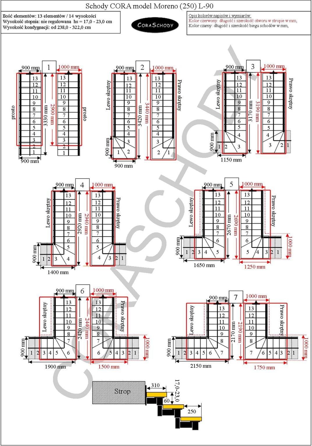 Schody Moreno 250 08 je možné inštalovať do jedného z 26 systémov prezentovaných výrobcom. Opracovanie schodiska je v originálnej torznej forme L-90, vľavo alebo vpravo, ako aj nezvyčajný rovný postup - v tomto prípade je potrebné do formulára pridať príslušnú anotáciu.