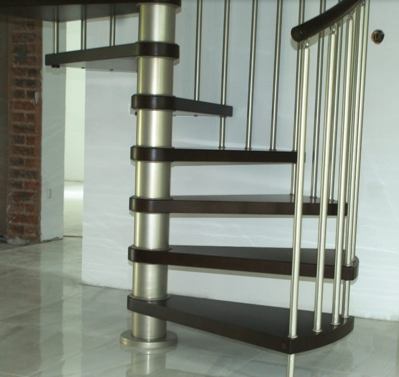 Zostava točitých schodov prispôsobená priemeru otvoru v strope 170 cm. Prvky sú vyrobené z masívneho dreva (farba na výber z farebnej palety výrobcu) a ocele s práškovým nástrekom v saténovej oceli. Môžete si ich zostaviť sami, ale výrobca poskytuje za príplatok aj službu montáže.