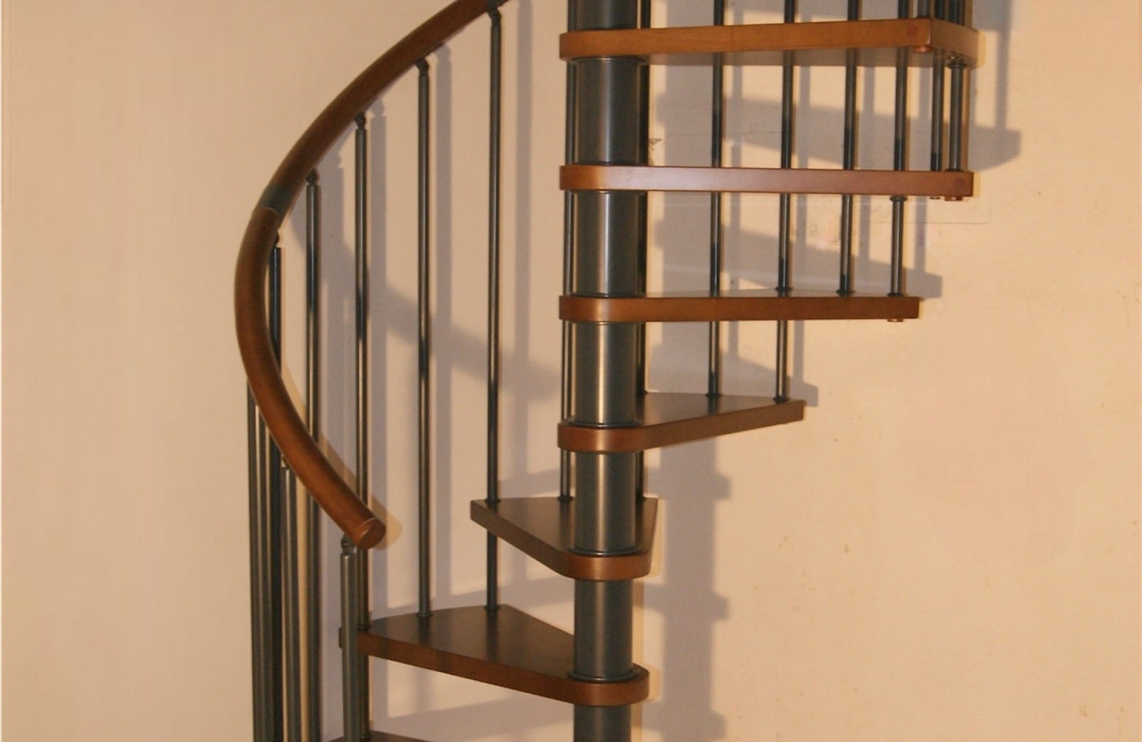 Zostava točitých schodov prispôsobená priemeru otvoru v strope 200 cm. Prvky sú vyrobené z masívneho dreva (farba na výber z farebnej palety výrobcu) a práškovo lakovanej ocele v antracitovej farbe (grafit). Môžete si ich zostaviť sami, ale výrobca poskytuje za príplatok aj službu montáže.