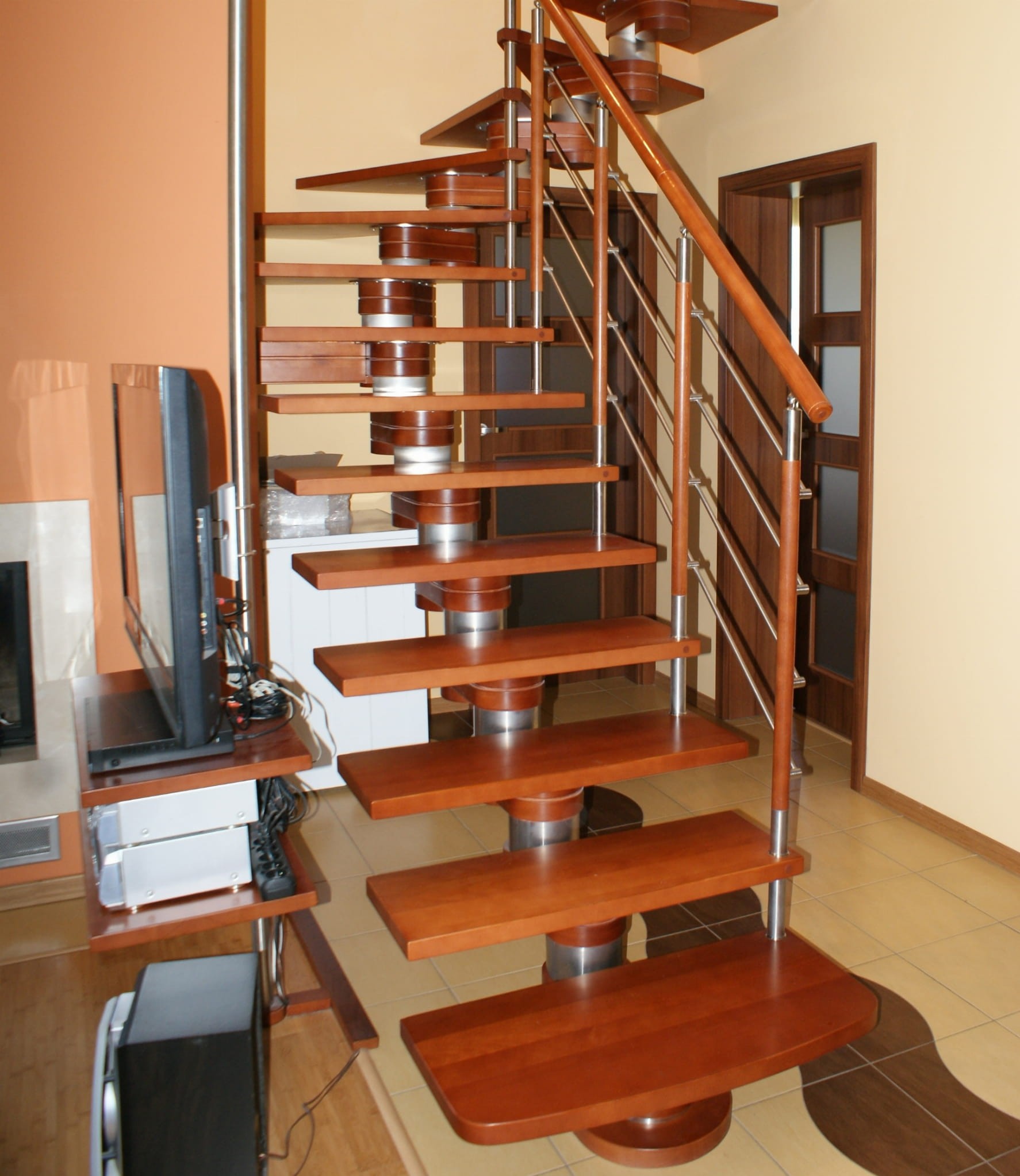 Sada obsahuje 15 prvkov schodov, poskladaných do 16 úrovní. Prvky sú vyrobené predovšetkým z masívneho dreva (farba na výber z farebnej palety prezentovanej výrobcom) a leštenej nehrdzavejúcej ocele. Po objednaní služby za príplatok odbornú montáž v danej krajine vykonáva výrobca.