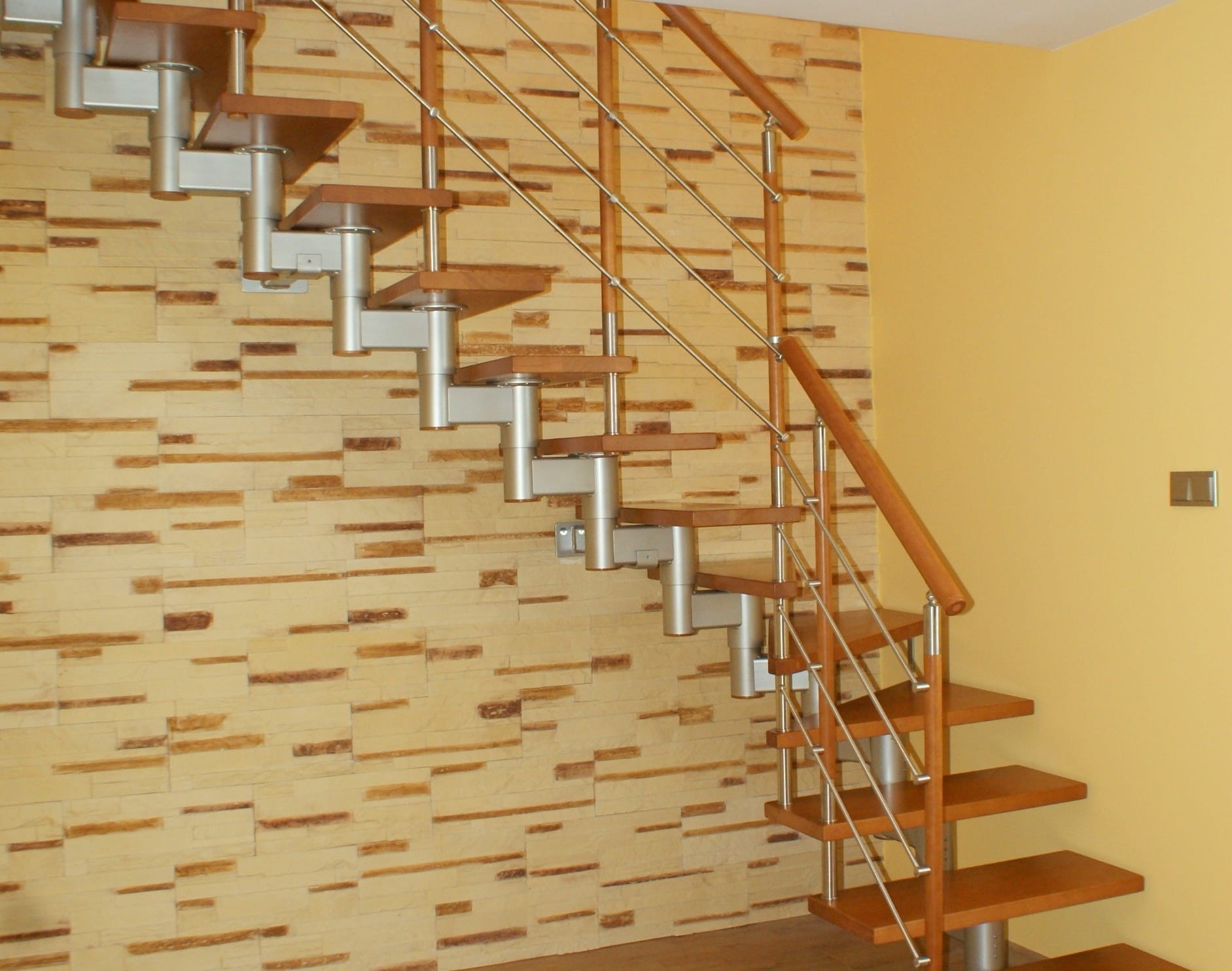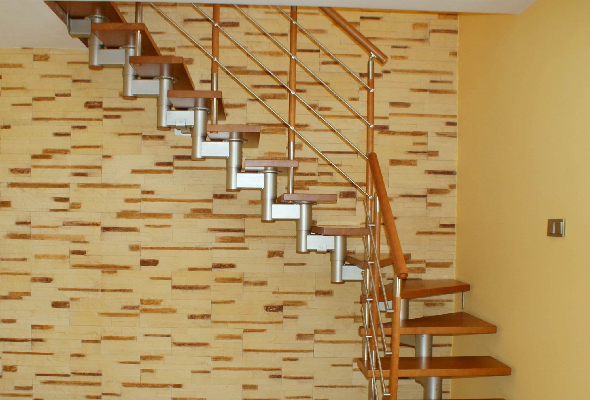 Schody sa odporúča inštalovať vedľa steny, do 5 cm od nej, čo umožňuje inštaláciu kotiev. Ak stena kotvenie neznesie, treba namiesto nej použiť nosný stĺp. Pre samostatne stojace schody sa počíta s použitím nosného stĺpika, ako aj obojstranného bezpečnostného zábradlia, ďalšie možnosti na vyžiadanie.