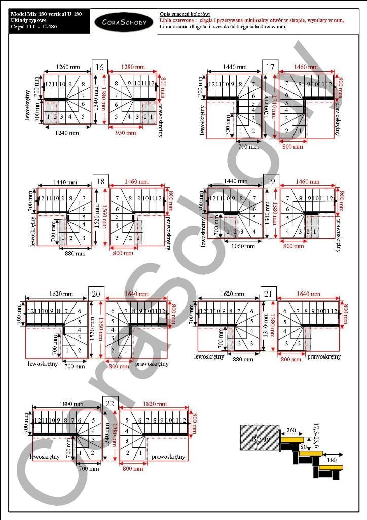 Schody Mix 180 lux je možné inštalovať v jednej zo 44 konfigurácií, ktoré sú plne prezentované výrobcom. Tento model má originálnu úpravu U-180, pravú aj ľavú. Jednoduchý postup je možné objednať po pridaní anotácií do objednávkového formulára.