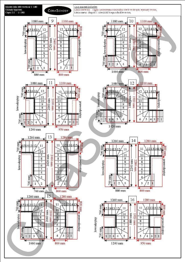 Konfigurácia, dispozície: Schody U-180 je možné použiť v 78 dispozíciách