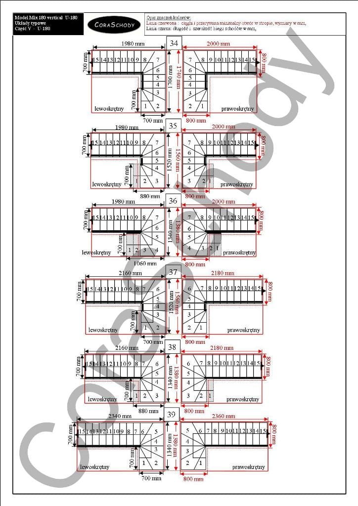Vertikálne schody Mix 180 je možné inštalovať v jednej zo 78 konfigurácií, ktoré všetky uvádza výrobca. Tento model má originálnu úpravu U-180, pravú aj ľavú. Jednoduchý postup je možné objednať po pridaní anotácií do objednávkového formulára.
