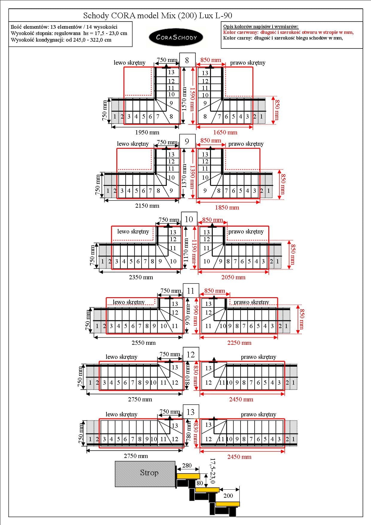 Od podlahy k podlahe 228 - 299 cm - 12 schodov / 13 výšok (- 1 schod)