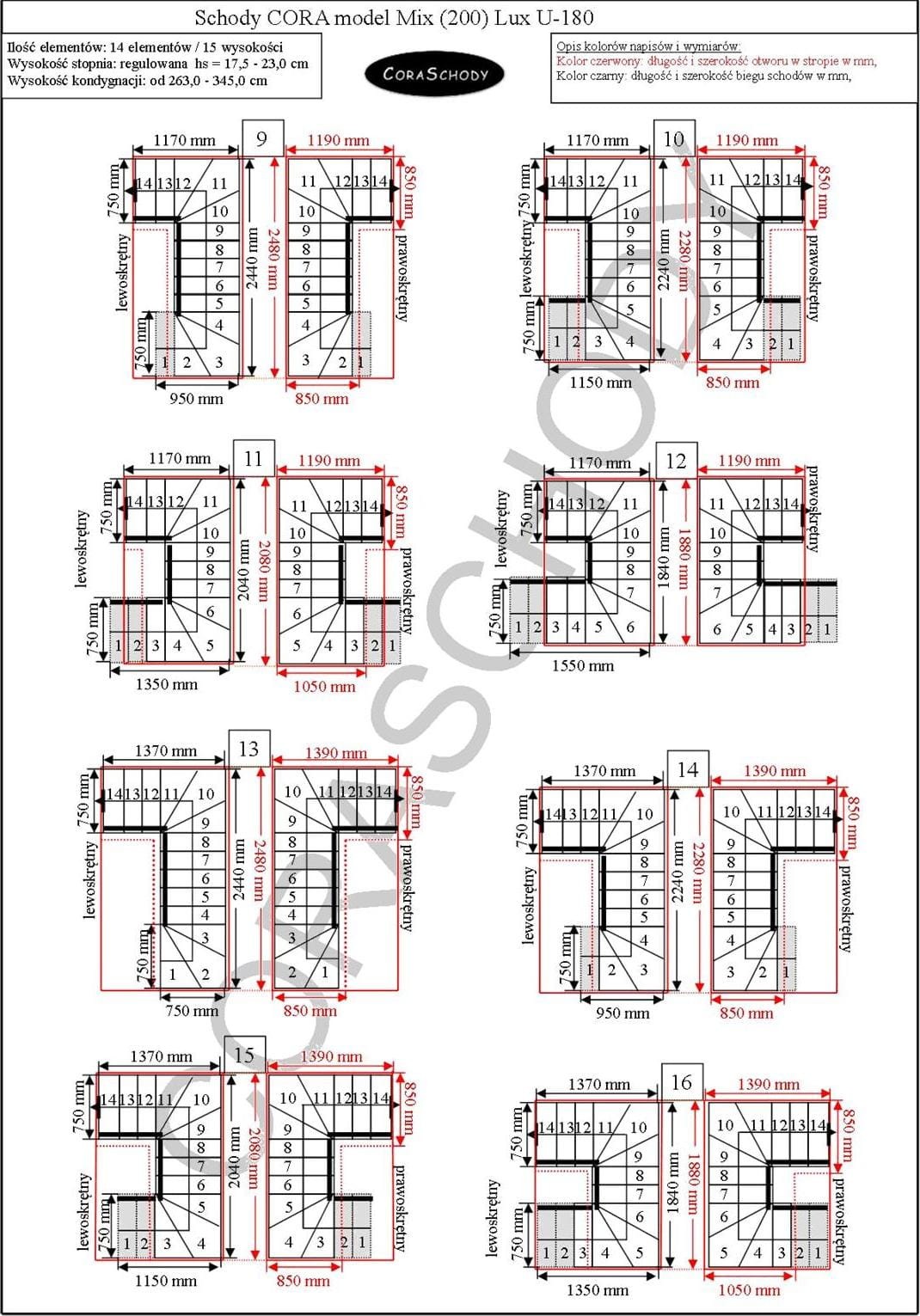 Schody Mix 200 lux je možné inštalovať v jednej zo 66 konfigurácií, ktoré sú plne prezentované výrobcom. Tento model má originálnu úpravu U-180, pravú aj ľavú. Jednoduchý postup je možné objednať po pridaní anotácií do objednávkového formulára.