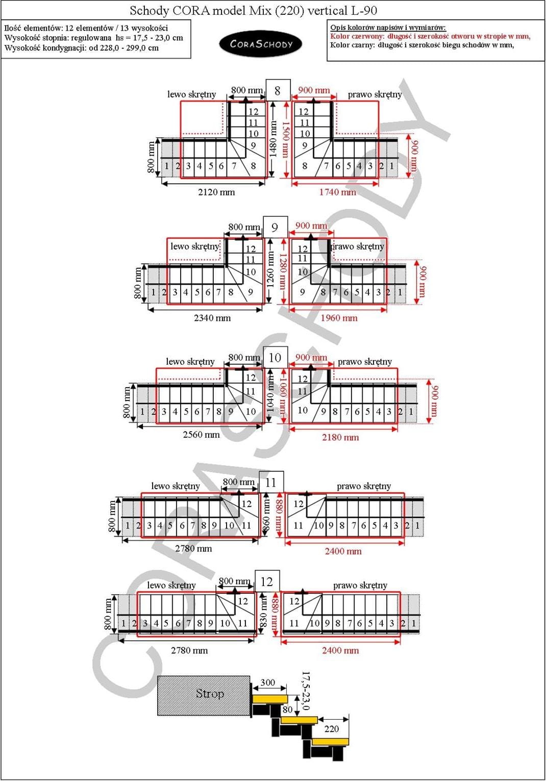 Schody Mix 220 je možné inštalovať do jedného z 24 systémov prezentovaných výrobcom. Opracovanie schodiska je v originálnej torznej forme L-90, vľavo alebo vpravo, ako aj nezvyčajný rovný postup - v tomto prípade je potrebné do formulára pridať príslušnú anotáciu.