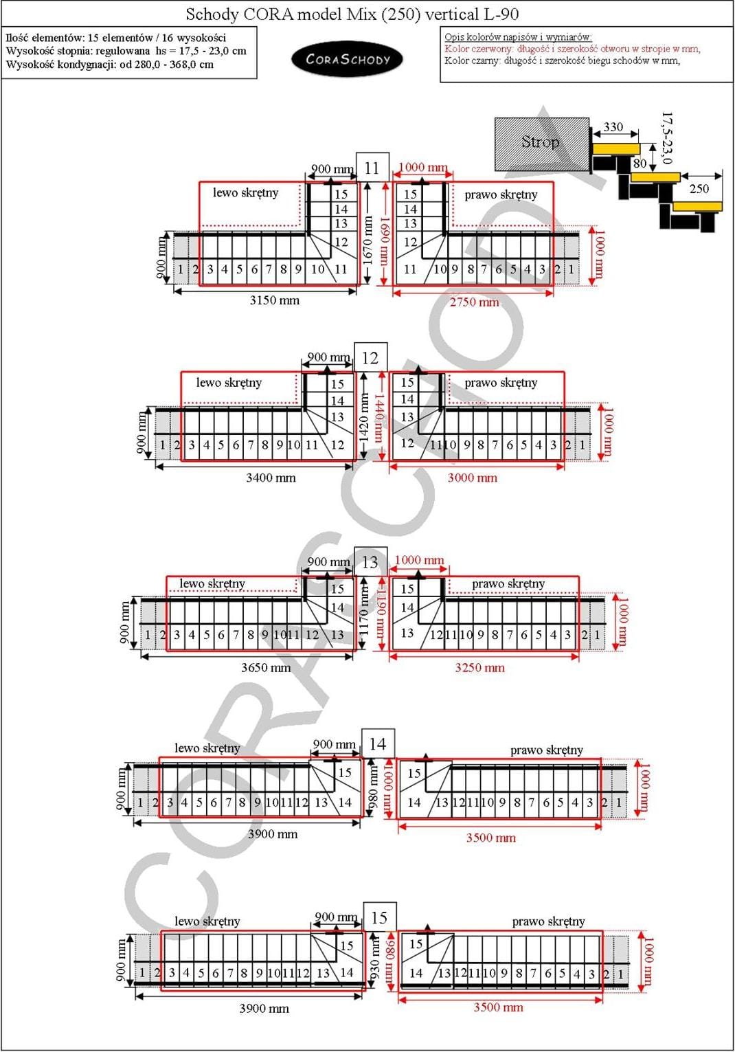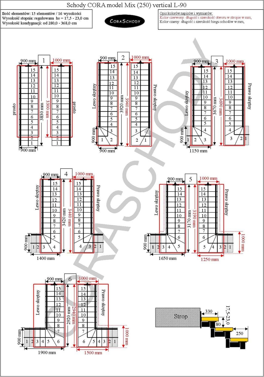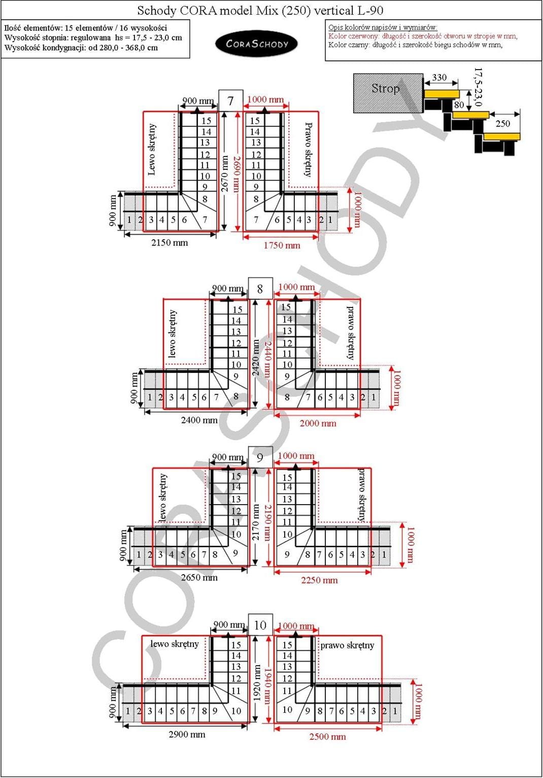 Schody Mix 250 je možné inštalovať do jedného z 30 systémov prezentovaných výrobcom. Opracovanie schodiska je v originálnej torznej forme L-90, vľavo alebo vpravo, ako aj nezvyčajný rovný postup - v tomto prípade je potrebné do formulára pridať príslušnú anotáciu.
