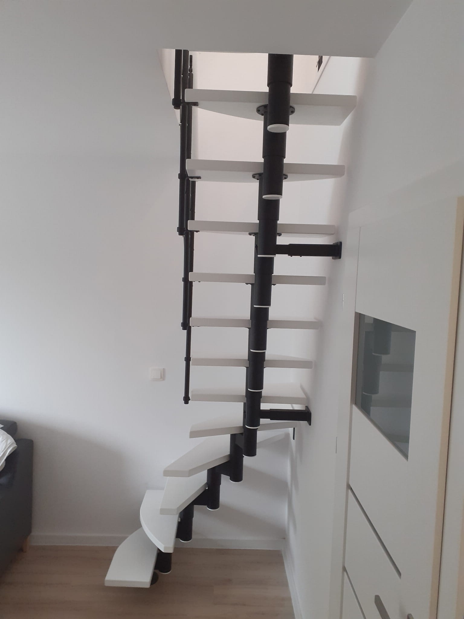 Schody by mali čiastočne smerovať k stene. Nemôžu sa vzdialiť od steny o viac ako 5 cm. To súvisí s bezpečnosťou používania schodov. Je potrebné použiť nástennú kotvu. Ak sú schody umiestnené ako voľne stojace, je vhodné použiť: - nosný stĺp, - balustrádu na oboch stranách schodiska,