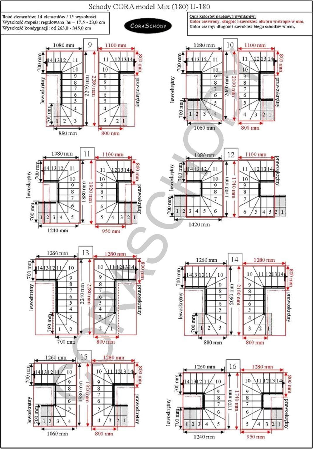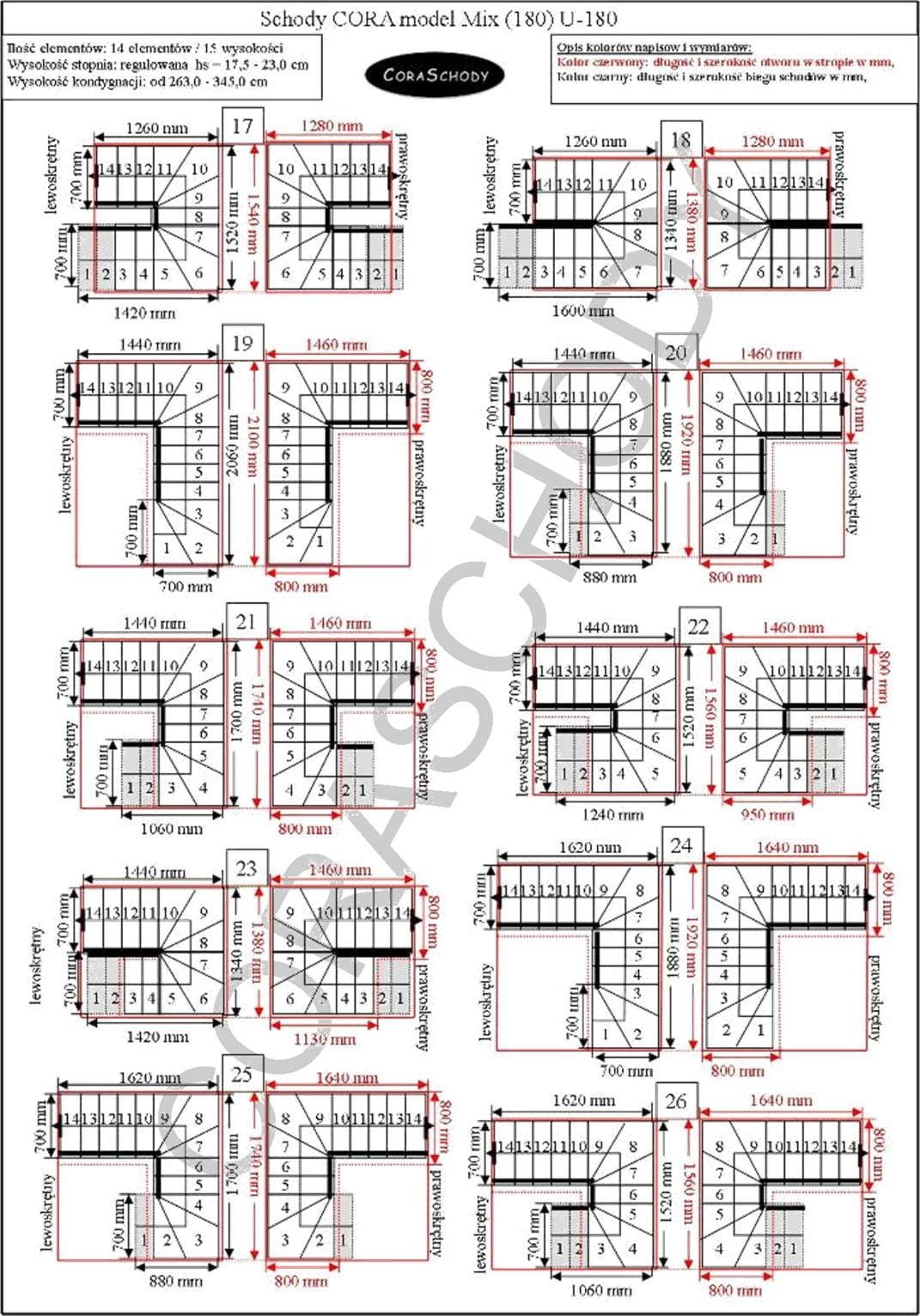 Konfigurácia, dispozície: schodisko U-180 je možné použiť v 66 dispozíciách